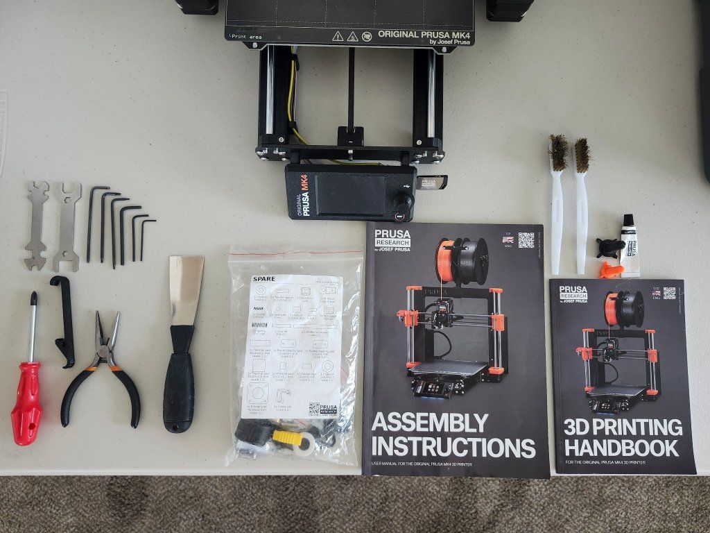 PayPalThe Original Prusa MK4 3D printer was Prusa Research by Josef Prusa's flagship 3D printer until the MK4S came out. I have owned this 3D printer for over 2 years, and has worked great. A few months ago I replaced the whole hotend (excluding the heater block), and now it is equipped with a high flow 0.4 nozzle from Prusa. When I bought the printer I also bought an extra smooth PEI build plate, which has never been used or opened from its original packaging. It includes all the original tools and some extra (pictured). I have also included 7 used spools of filament: