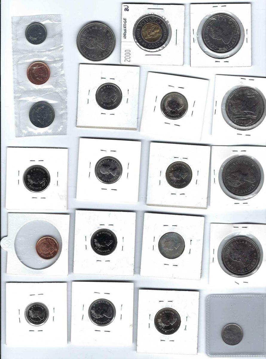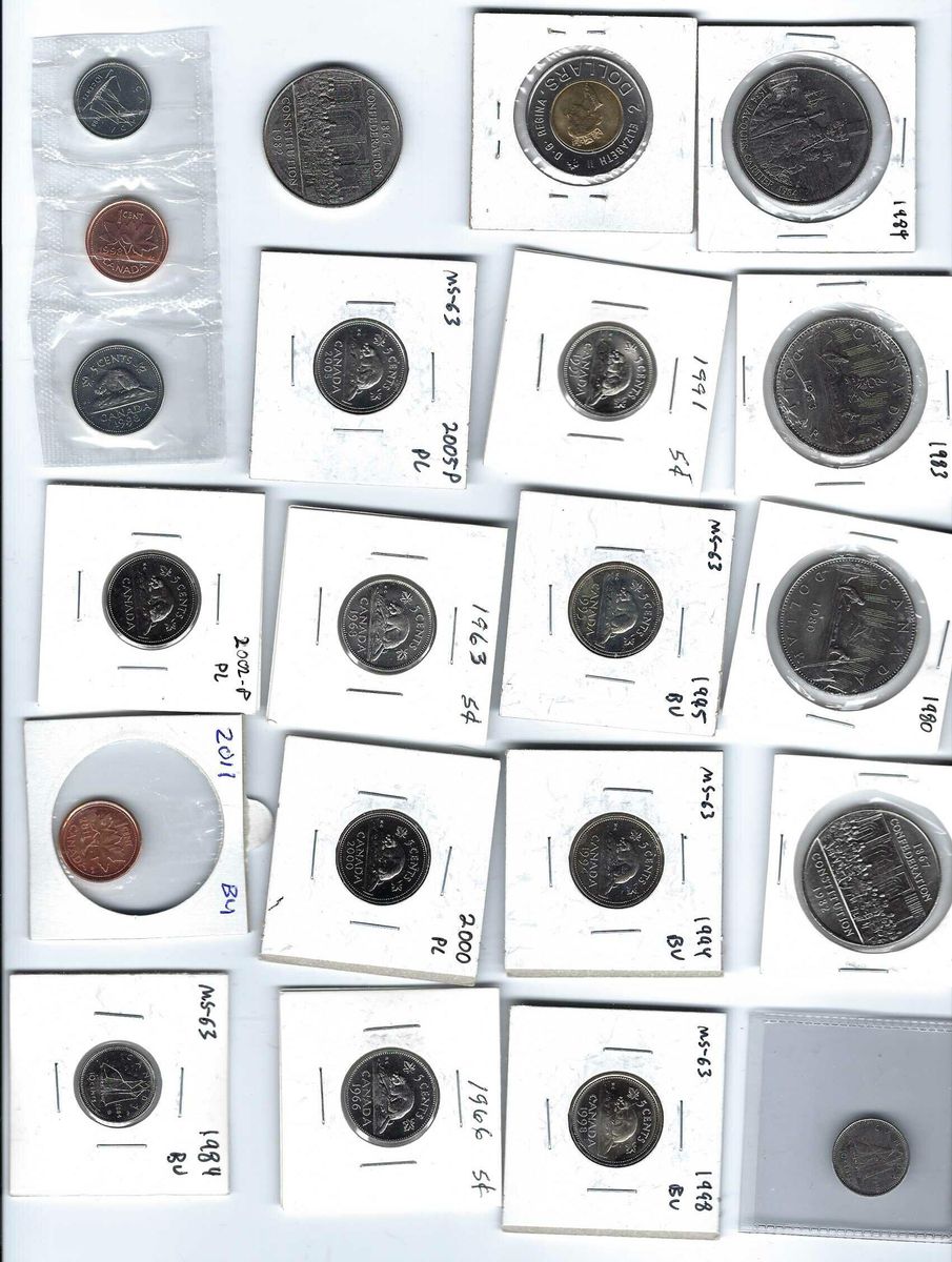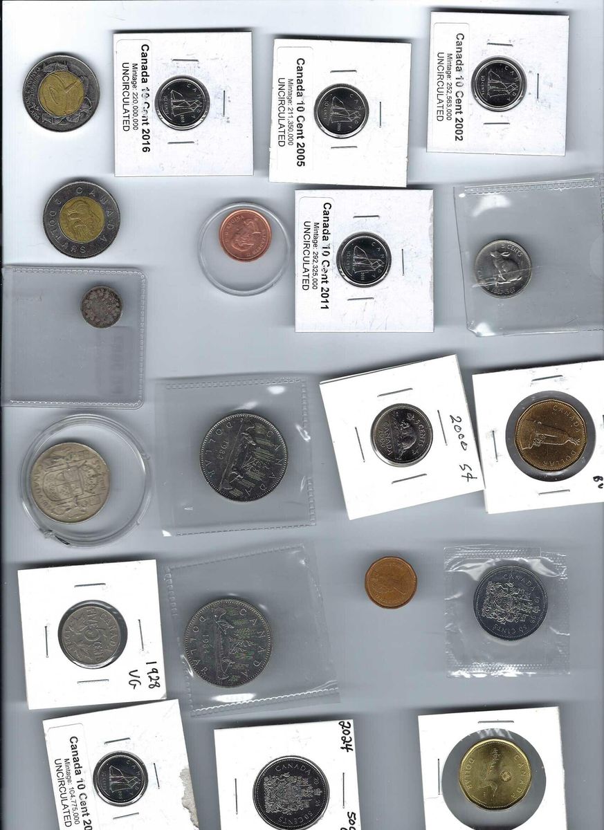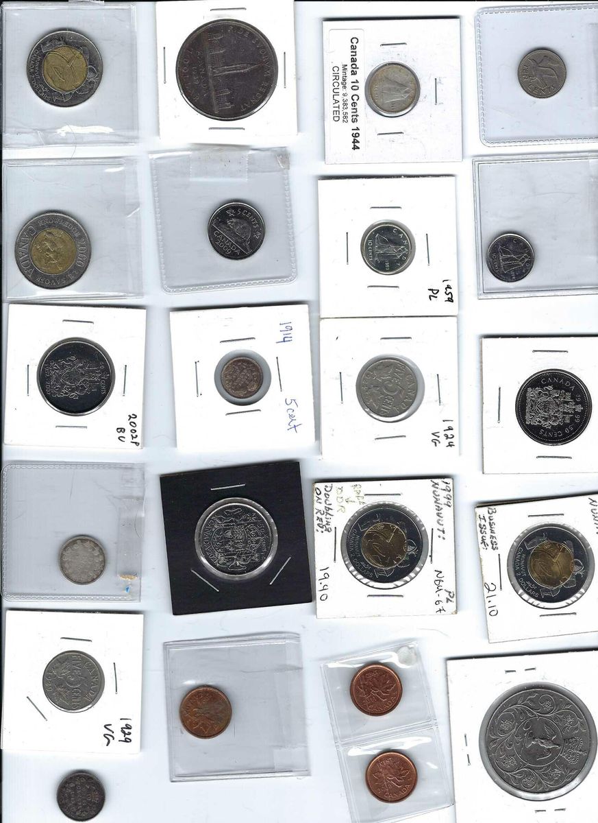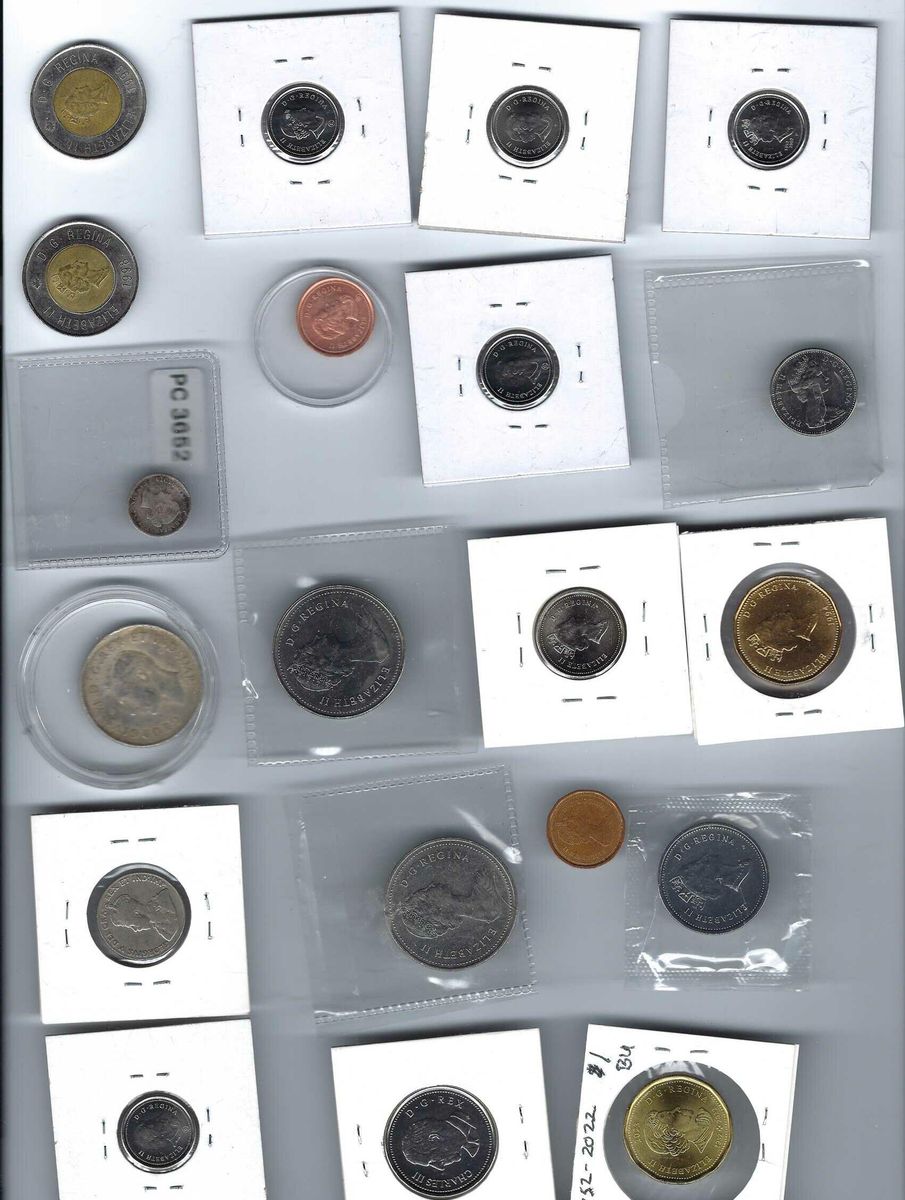 ZelleThe product is a lot of 42 Canadian coins ranging from one cent to $2, including a 1977 Trade Dollar. The coins are composed of various metals such as bronze, silver, copper, nickel, copper, steel, and zinc. They are of various colors and have a combined value of $47.91. The coins are uncirculated or circulated, ungraded, uncertified, and have a country of origin of Canada. The lot includes coins with different years of production, from 1914 to 2025, each with a specific KM number.
