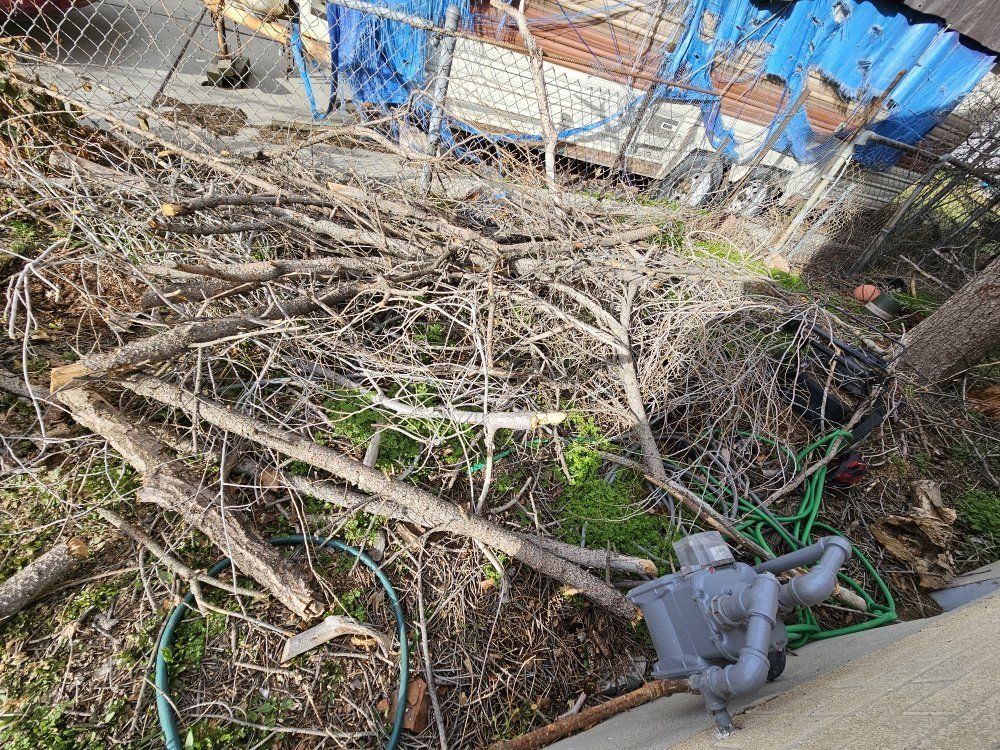 Very Dry Pine Branches and a Large (Out of the Ground) Stump from a fallen, Dead, Pine Tree.