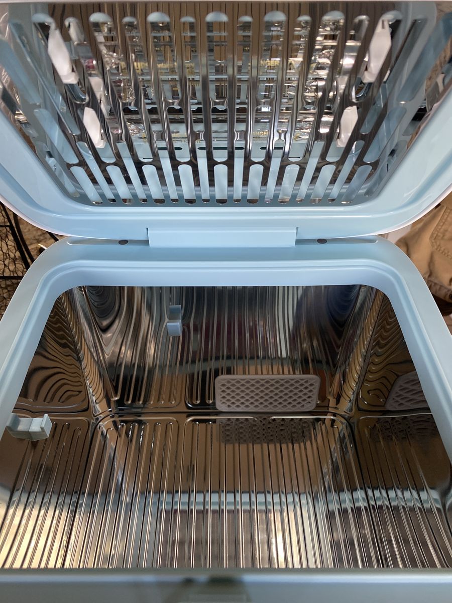 Brand new, opened and unwrapped for photos. 4 in 1 UV light sanitizing and dryer pro. Dual UV-C lamps large capacity, touch controls.