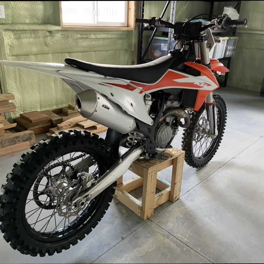 Clean 2020 ktm 350 sx-f. Second owner! Bought it two years ago and have only put 20 hours on it! Bike currently has exactly 100 hrs on it. Don’t ride as much as I used to and time to change hobbies is all. Bike meticulously cared for and always garage kept! Fires right up and ready to go! Thanks for looking