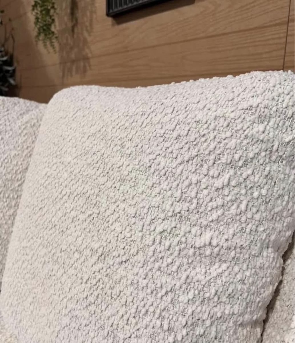 Features: Modern Design with Boucle Textured Fabric High-Density Foam Seat Cushions Durable Nylon Webbed Seating Support Storage Ottoman Includes 3 Back Pillows