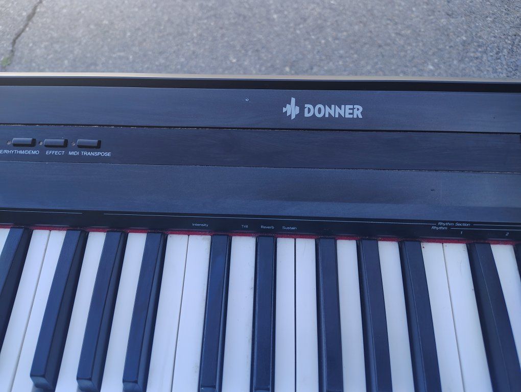 Up for sale an awesome DONNER DEP-10 PIANO KEYBOARD 88 KEY in very good conditions ... Include ac adapter , and seat . play very well , beautiful sound! . see pictures plz call or text 8019704431 thanks!
