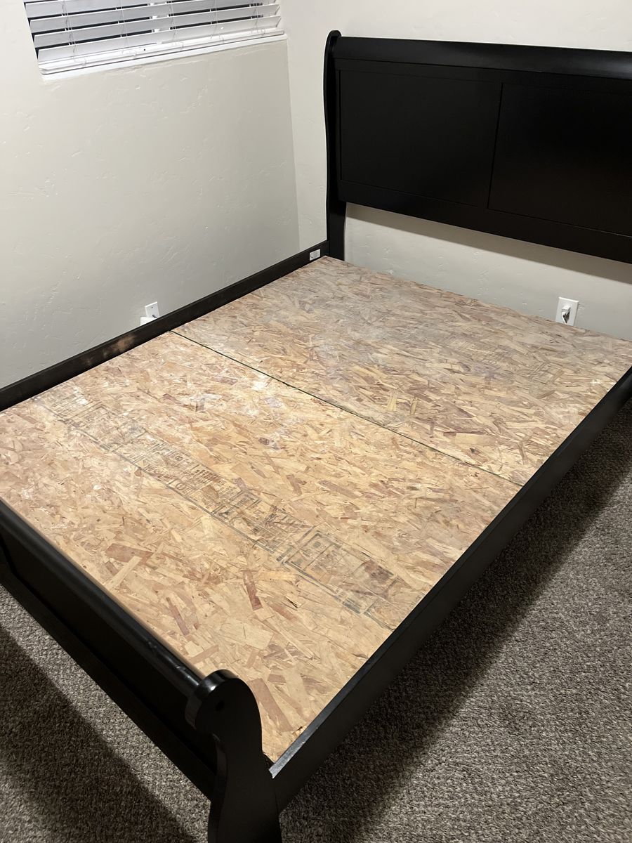 VenmoGot this bed frame for sale , its tooken apart i had plywood on the base of the bed frame because i wanted my bed lower so i sold the base box i bought with my mattress so i installed plywood but threw the plywood away so its just the bed frame itself.