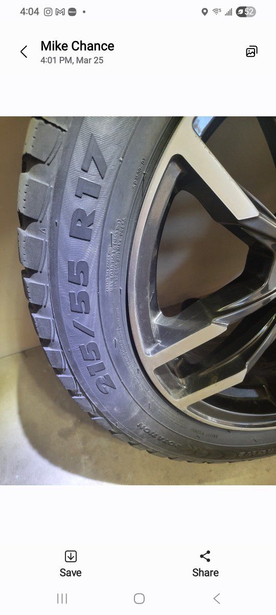 Venmorims 215/55/R17 tires and rims Fits Kia Optima Great condition all season tires. $450.00 or best reasonable offer.