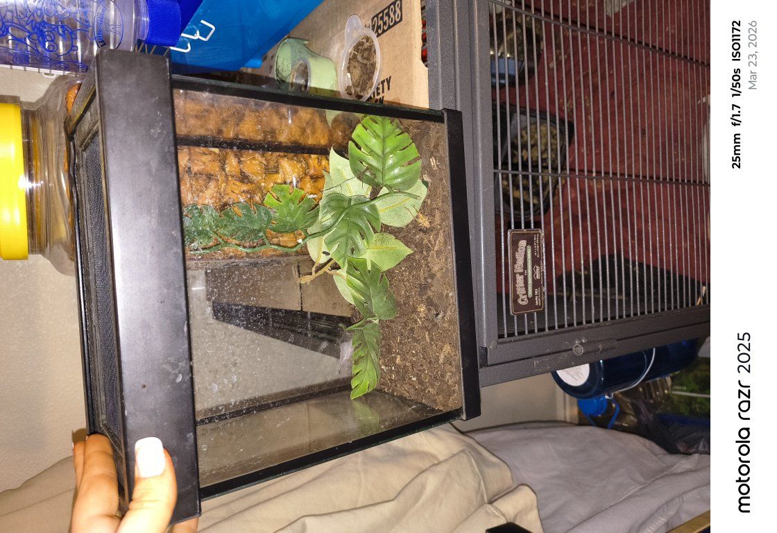 CashApp500 obo I'm selling as a bulk. don't have time for them anymore. I was going to keep them but decided not to. I have 4-5 blocks of substrate.anunmwl safe gule. lights no bulbs everything in the tanks plus tank and lizards what food I have left. decor. ect. not selling separate please don't ask. looking for 500 obo. no low ball the tall cage was 400 new and that's just the cage. 3 adult the extra spot is male the rest female. the baby idk age or gender.