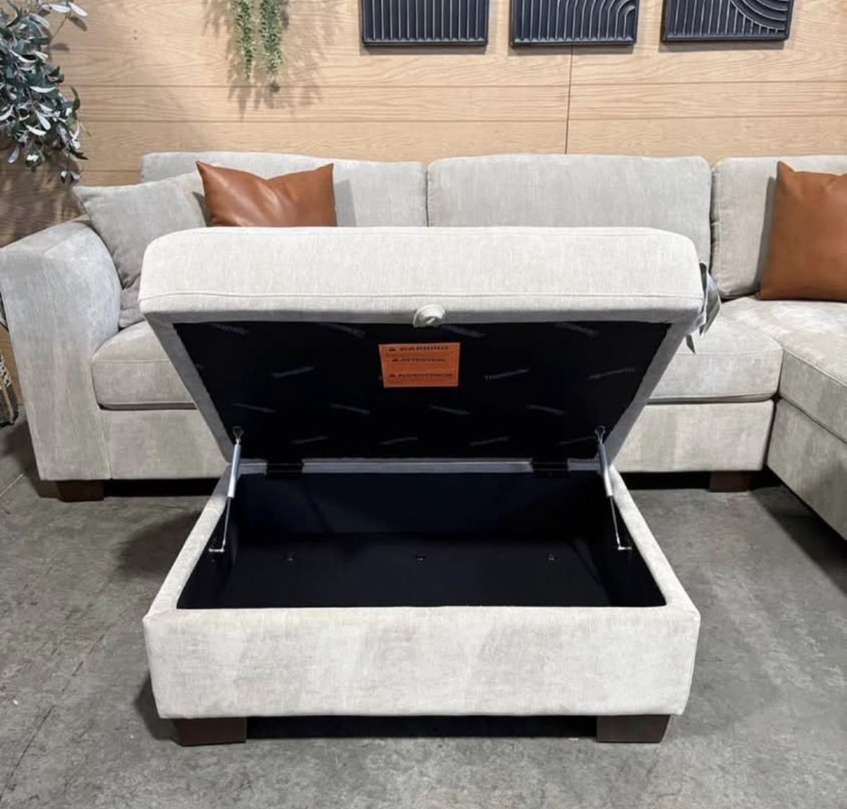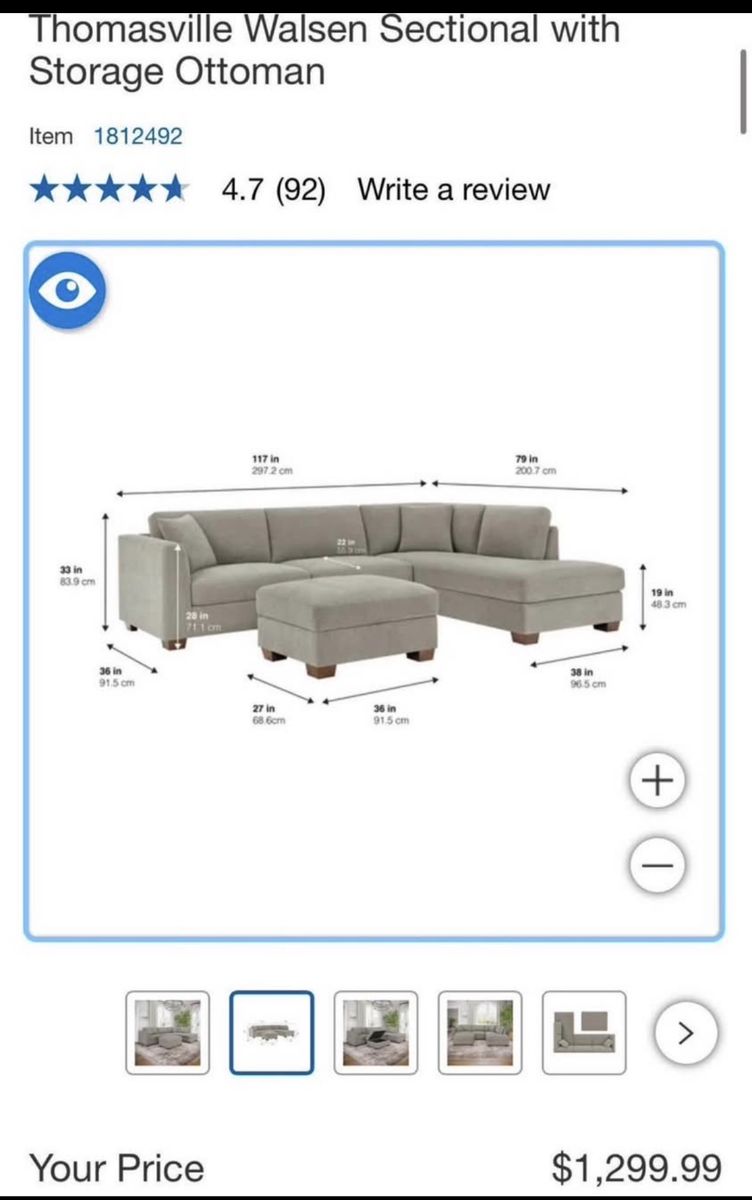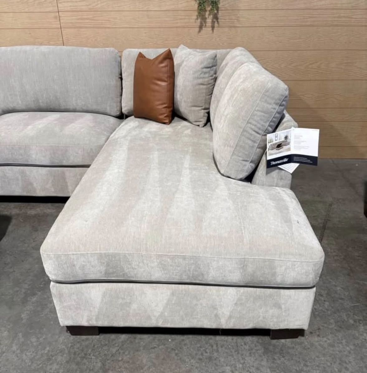 WHY YOU WILL LOVE THIS SECTIONAL... Transform your living room with the Thomasville Walsen Sectional Chaise with Storage Ottoman. Luxurious, soft polyester fabric and firm seat cushions offer the perfect blend of comfort and support. The modern track arm and solid wood tapered legs add a touch of elegance, while the lounging chaise and storage ottoman provide unmatched versatility. With two stylish accent pillows and practical attached cushions, this sectional is designed for both beauty and functionality. Enjoy ultimate relaxation and chic style with Thomasville.