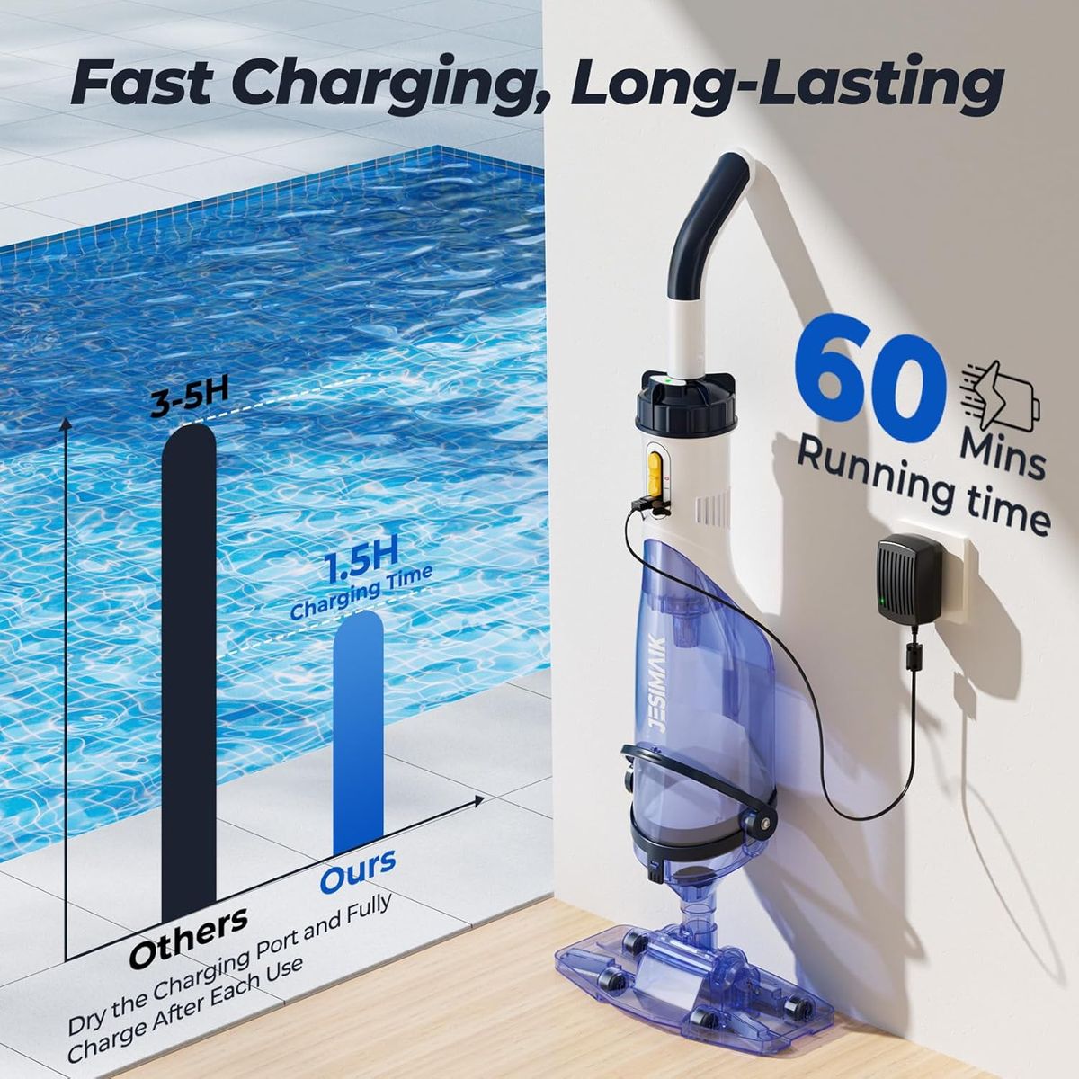 NEW IN BOX! Handheld Pool Vacuum, JESIMAIK Rechargeable Pool Vacuum Cleaner with 18.5 GPM, 60 Min Runtime, Telescopic Pole, Ideal Cordless Pool Vacuum for Above Ground Pools, Inground Pool, Spas, Hot Tubs