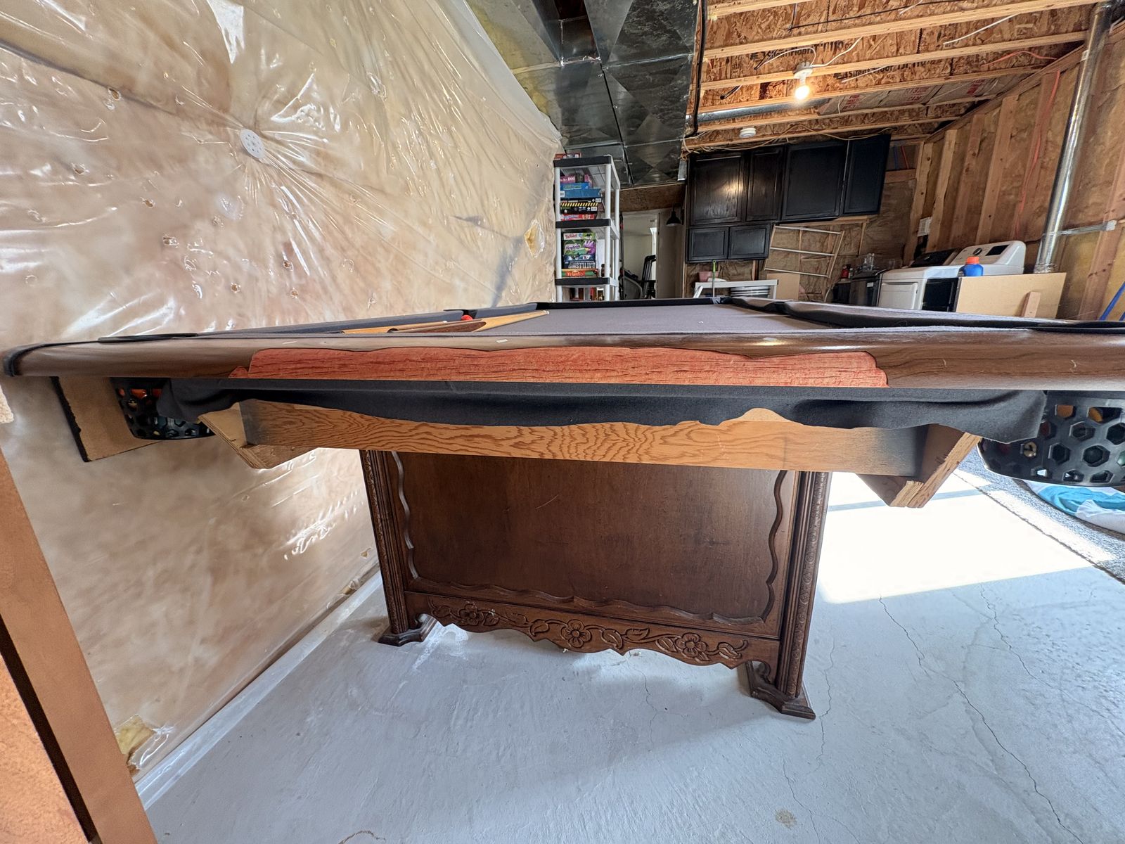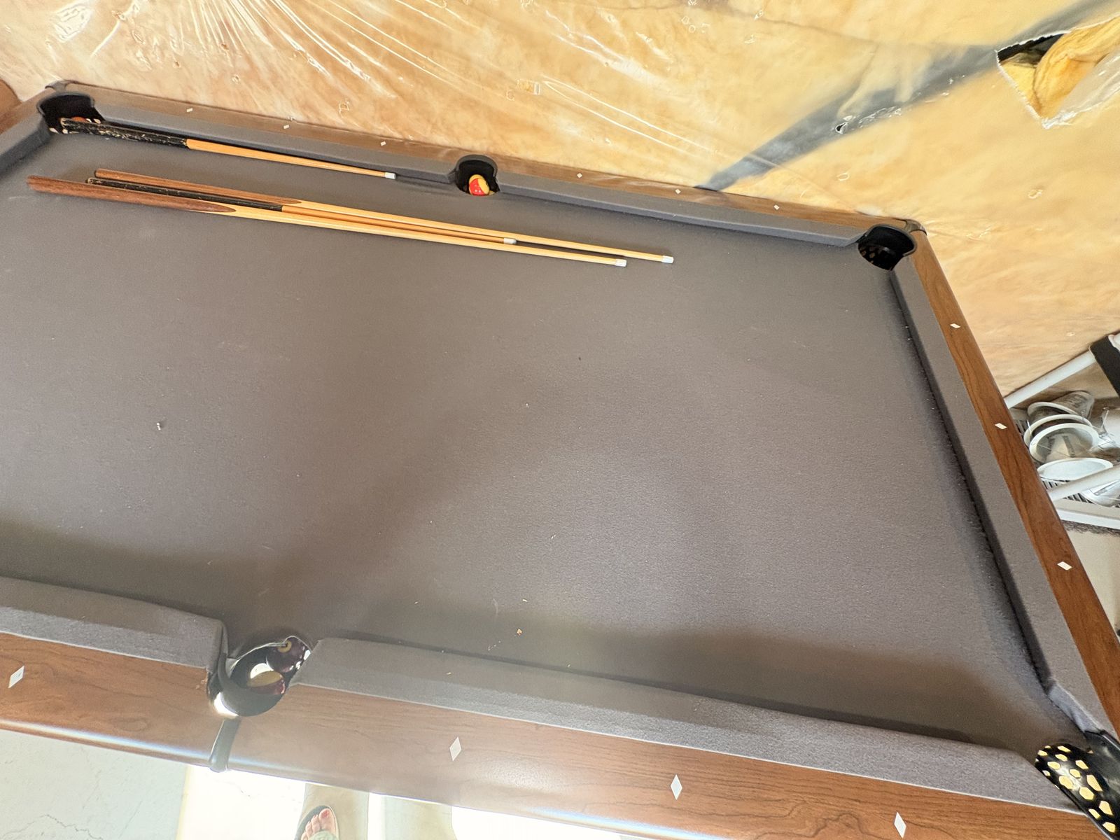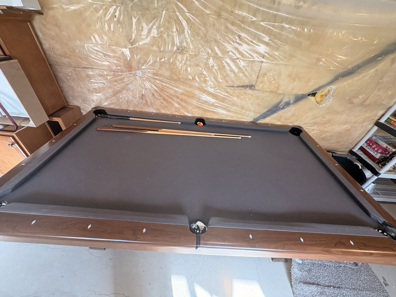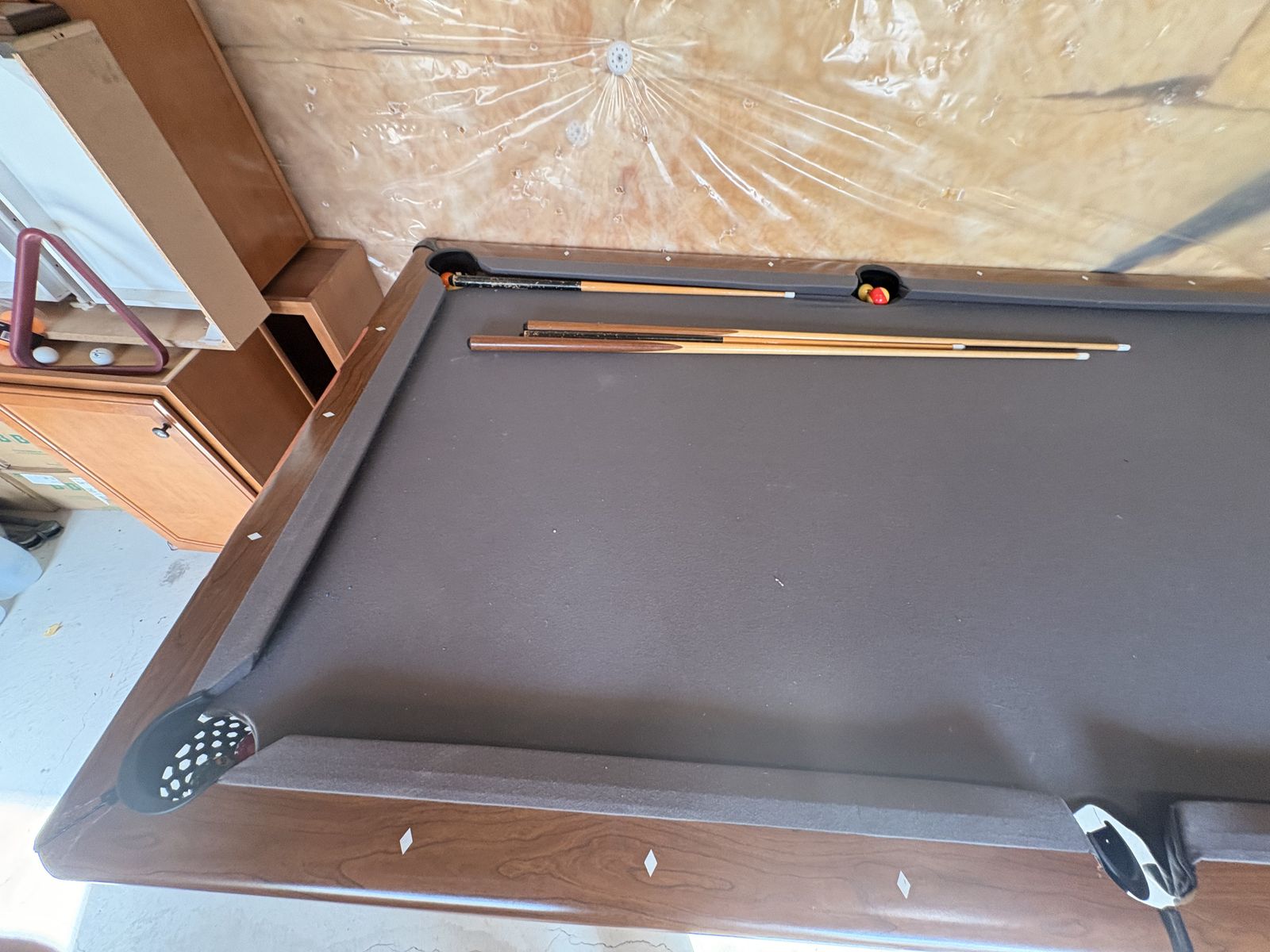 VenmoPool table that could use a little love. Comes with balls and 4 Cue's. Felt has been replaced recently (gray).