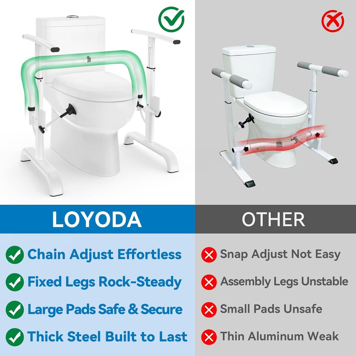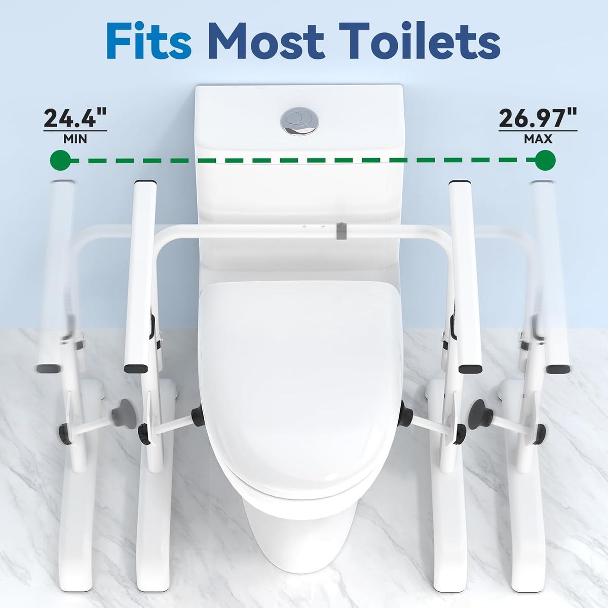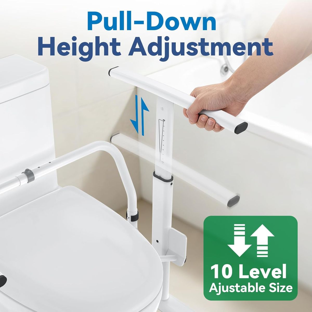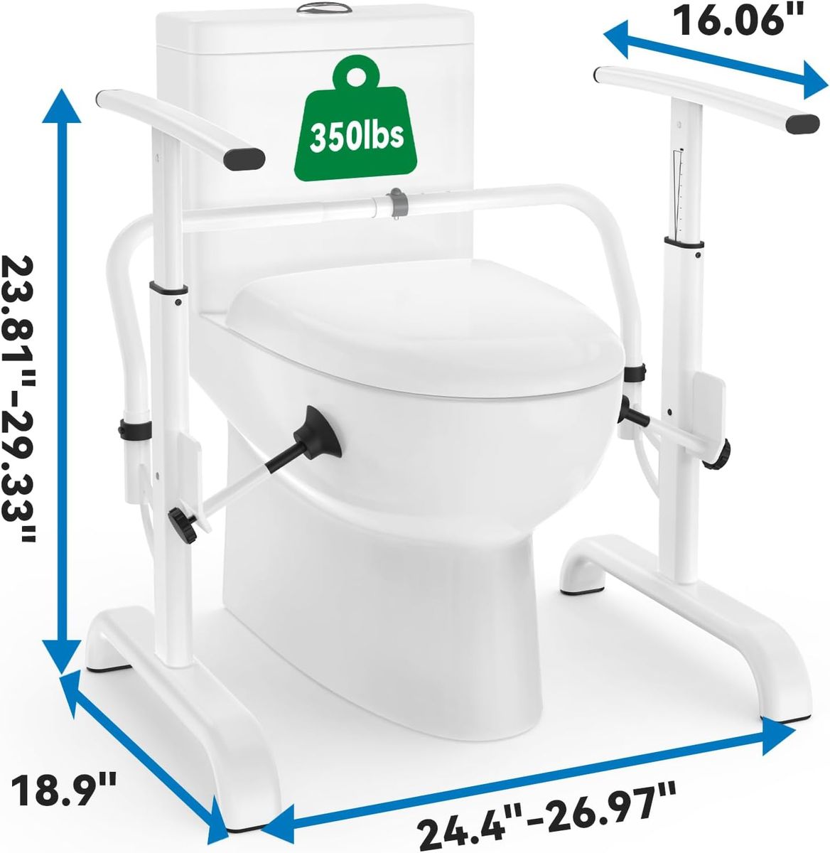 NEW IN BOX! Toilet Safety Rails for Elderly, 350 lbs Capacity Toilet Handles with Width Adjustment, Chain Adjustable Height Toilet Safety Rails for Seniors