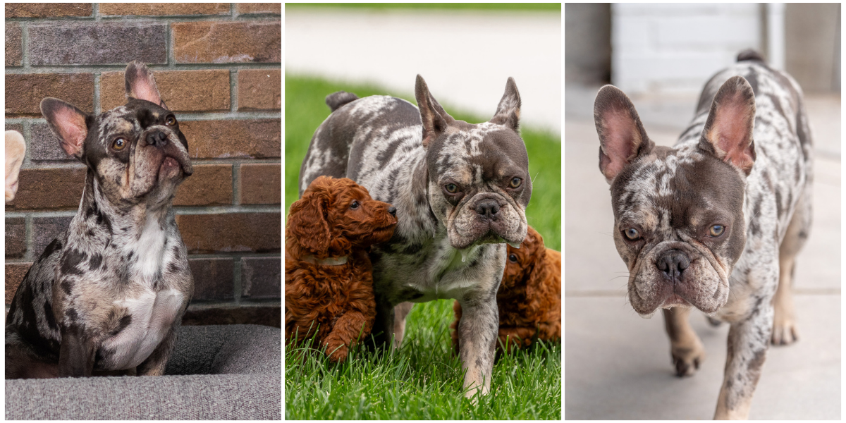 About BlueMeet Blue, our AKC Blue Merle French Bulldog stud with an incredible personality and stunning coat. His merle coloring paired with his soft coat and light eyes gives him a very unique and eye-catching look.