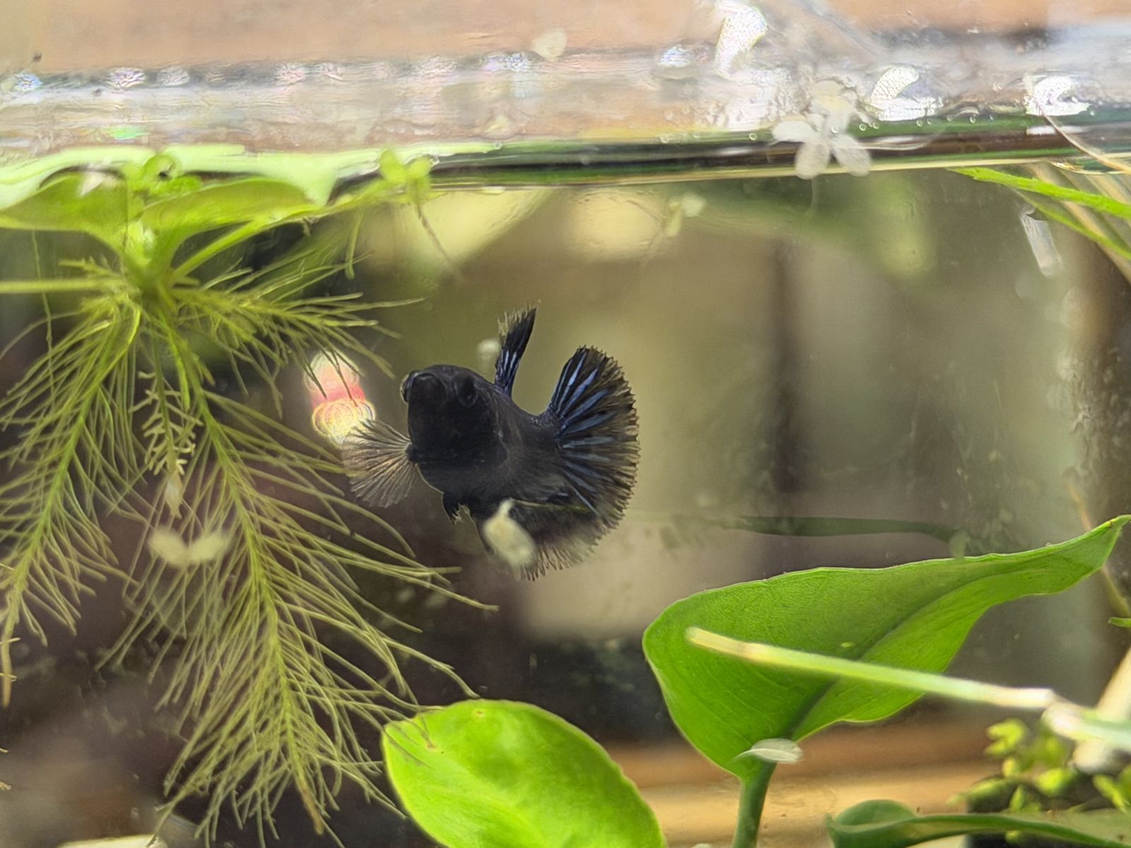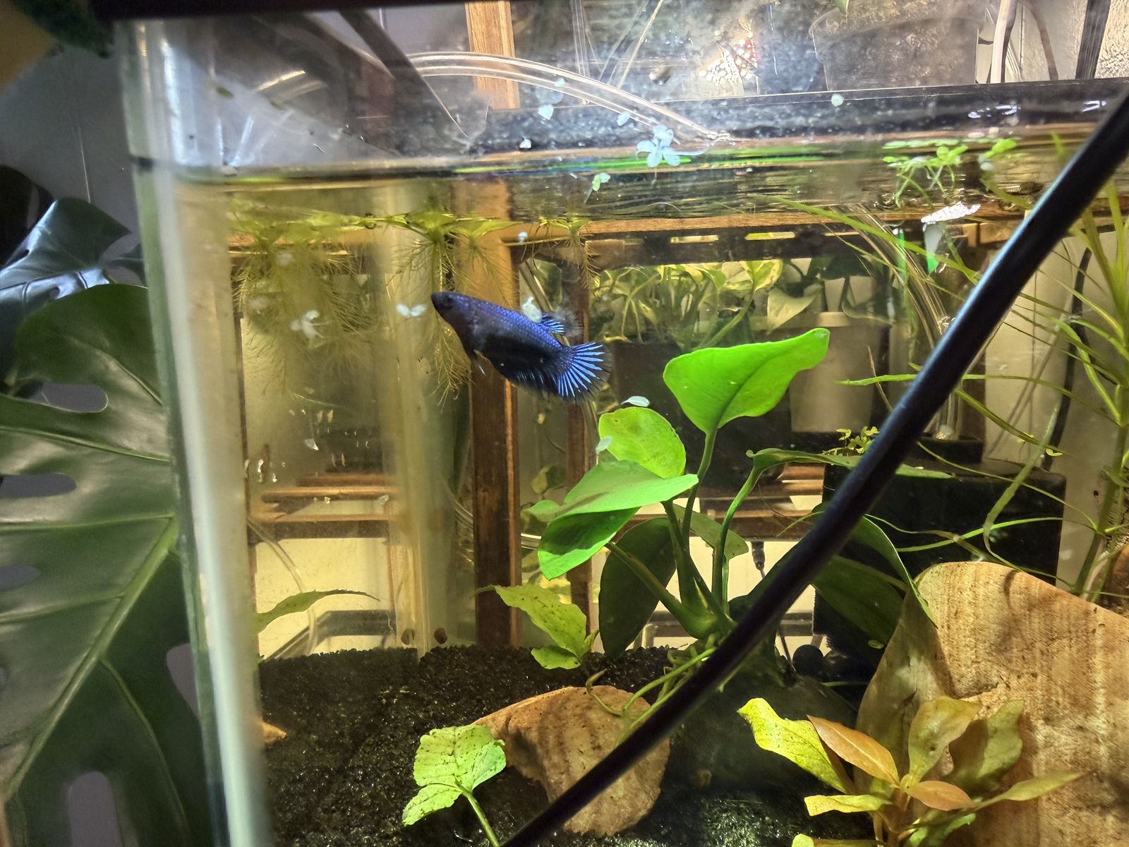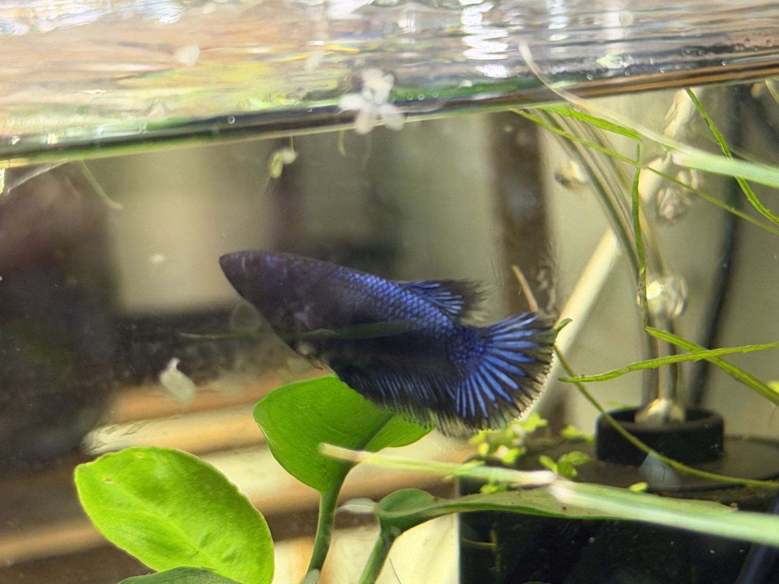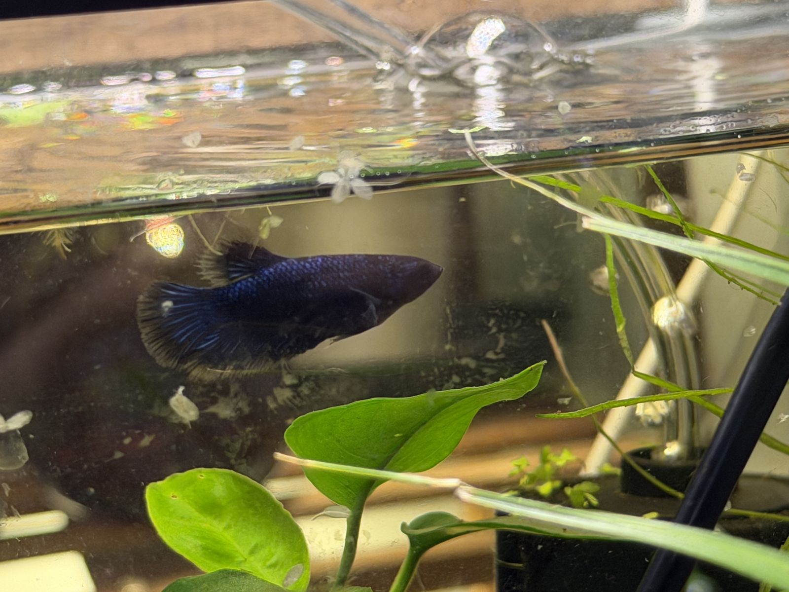 Female betta, born in a home aquarium, she around three months old. 10 or best offer.