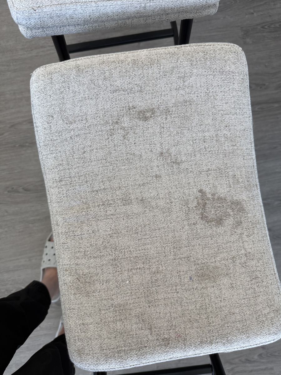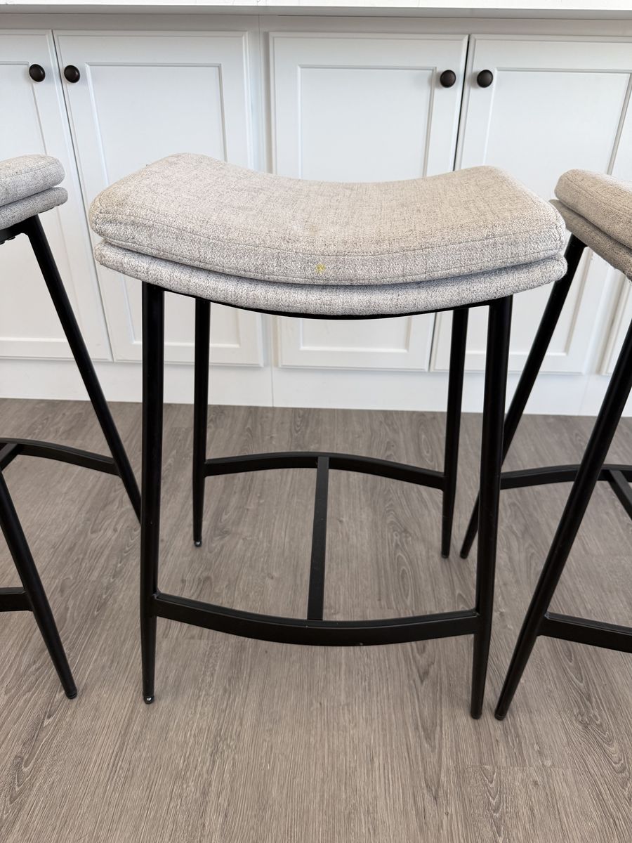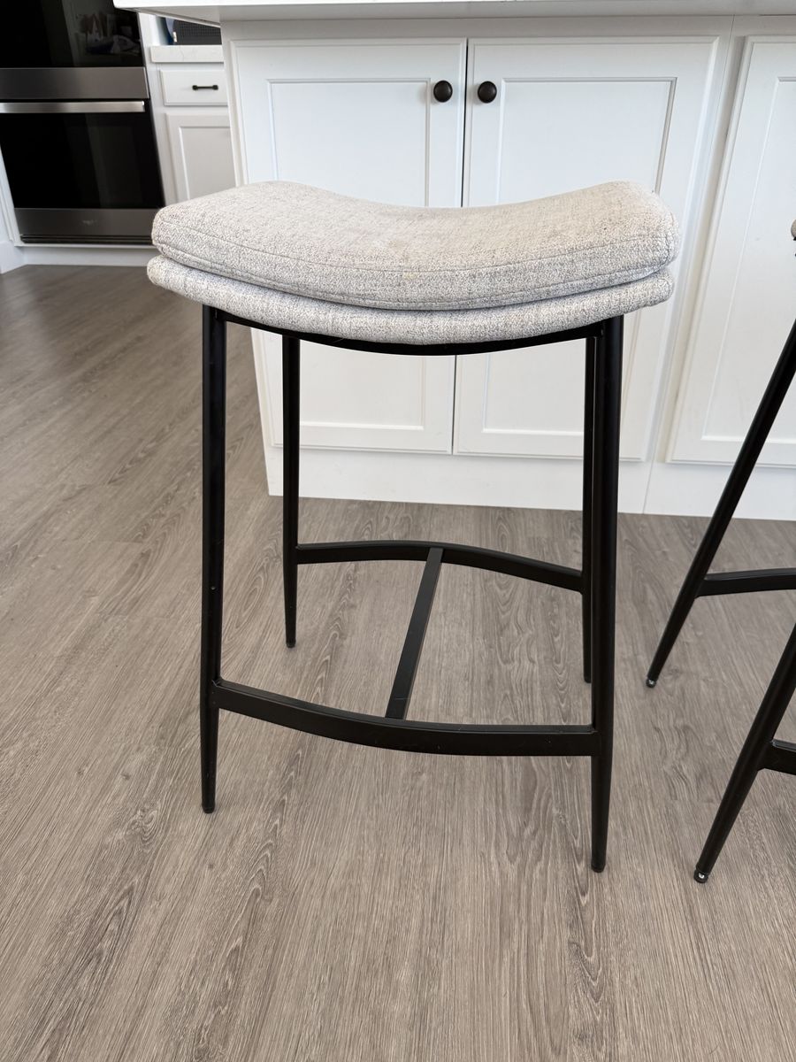 VenmoNathan James bar stools. Great project to reupholster! $20 for all 4. Product Dimensions 15"D x 19.3"W x 27"H Brand Nathan James Color Feather Gray/Matte Black Frame Material Metal Seat Material Type Fabric