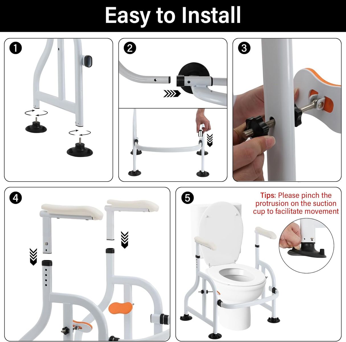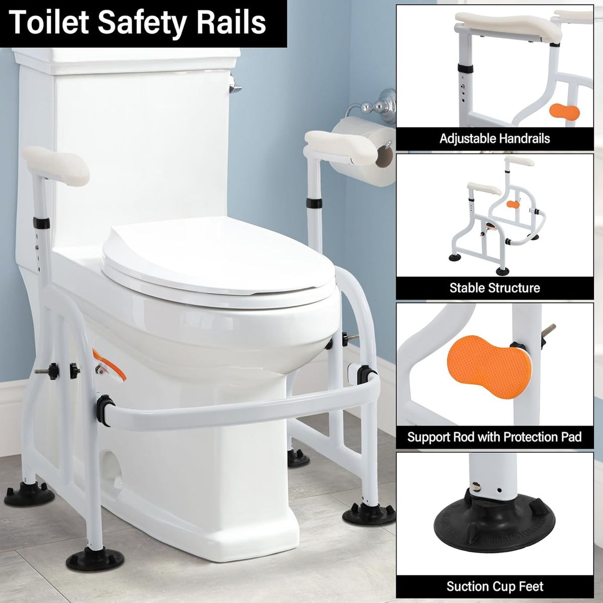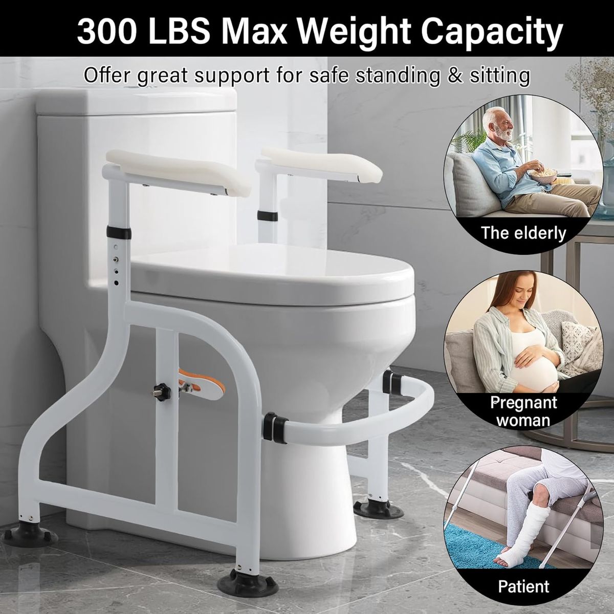 NEW IN BOX! Toilet Safety Rails with Adjustable Handrails, 300 Lbs Weight Capacity Toilet Rails, Toilet Safety Frames & Rails for The Elderly, Pregnant Women, Patients