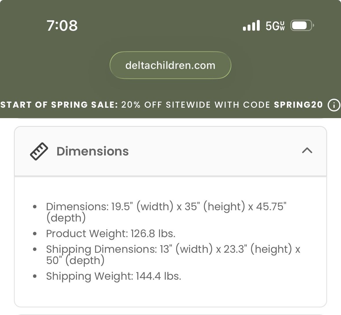 ZelleThis is a brand new, still in box set! Pictures of products are from the website since I have not assembled the products. Super cute set, I just decided on something different after it arrived and Delta Children won’t allow returns. Selling for $100 less than you can get brand new from site!