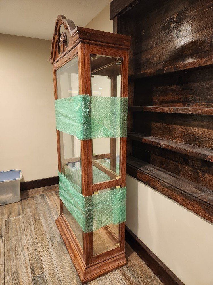 In great condition. Has 4 glass shelves inside. Heavy. Buyer will be responsible for moving it out of my basement and loading into their own vehicle.