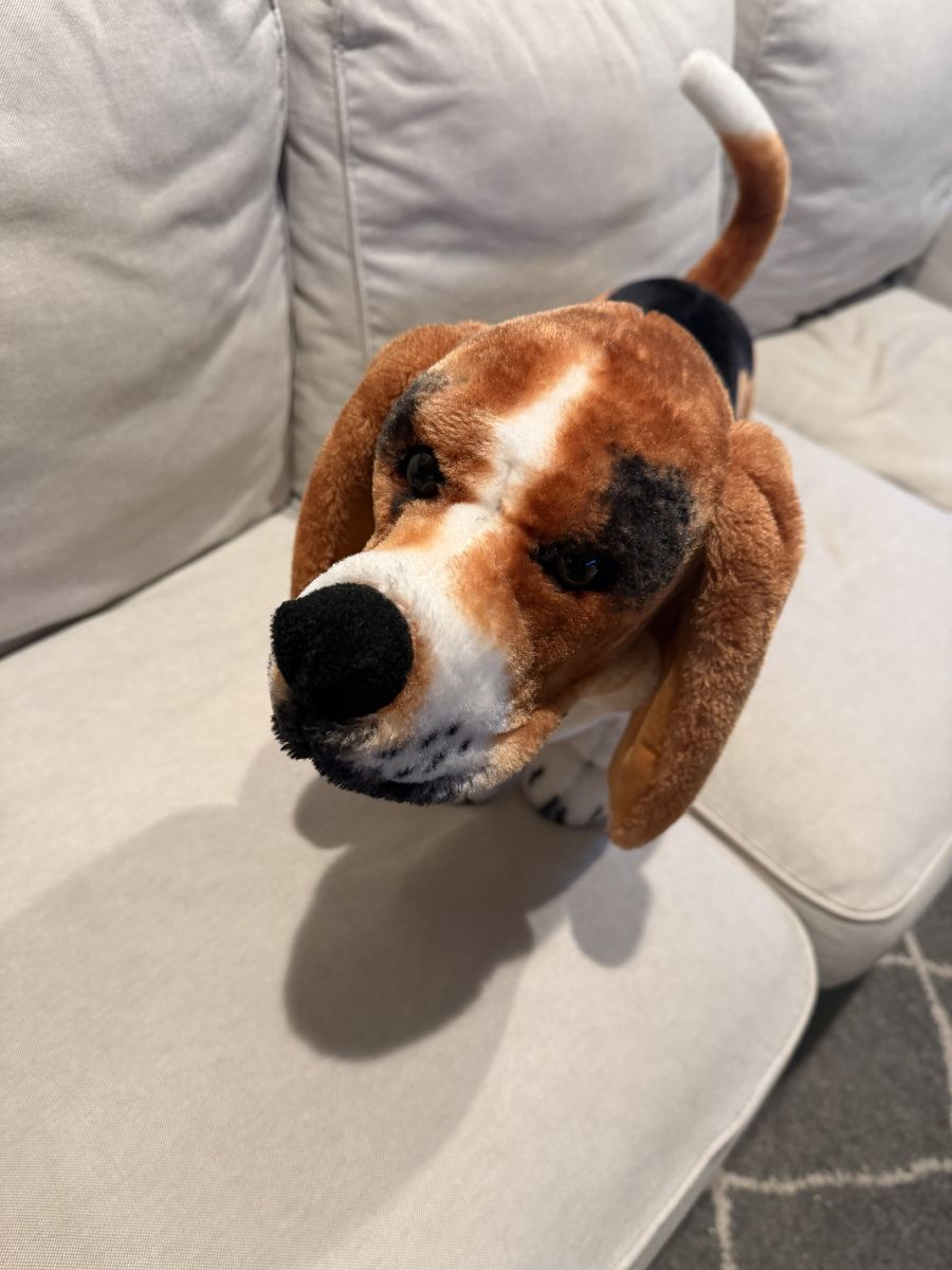 VenmoHe is huge and adorable. Stands on his own. About 20 inches snout to tail.