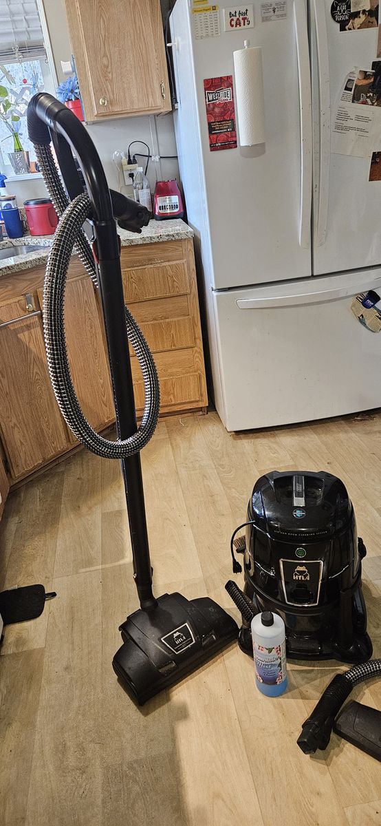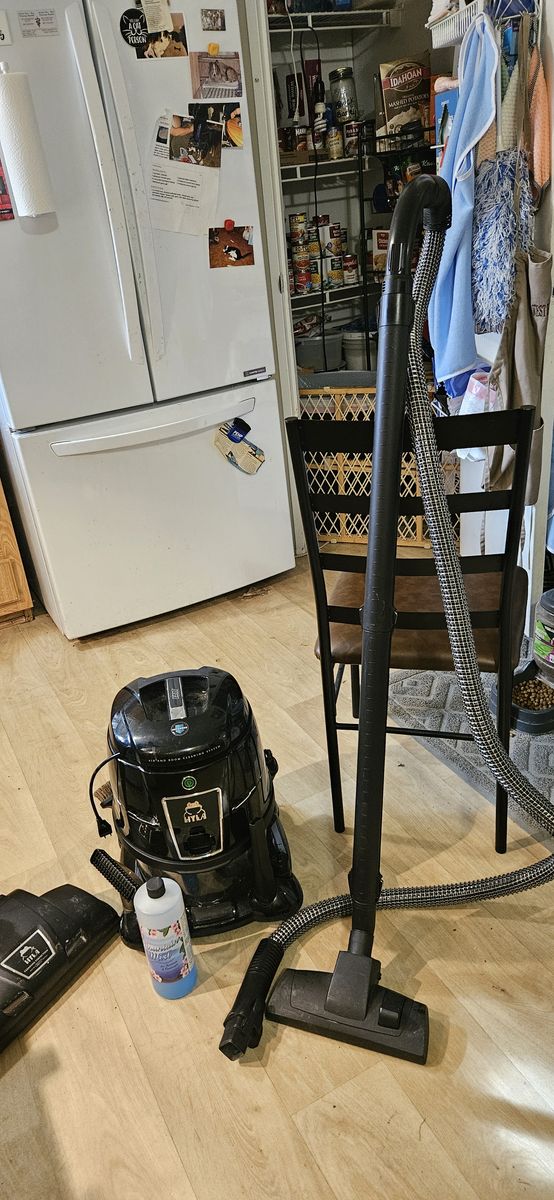 VenmoSelling my Hyla water filtration/air purifier vacuum. Has barely been used due to the fact that my husband decided to replace most of the carpets with laminate shortly after I bought it Although it has the hose/floor head to vacuum hard floors, I prefer using a broom or my small stick vacuum for them. Comes with all original attachments, (brushes, crevice tool, etc) Also has the powerhead for carpets. Runs perfectly and does a wonderful job of sucking up and trapping the dirt and dust in the water chamber. Can also be run without the hose attached on a 30 minute cycle to suck in airborne dust and purify the air. Also includes a bottle about 2/3 full of the solution you can add to the water in the tank to further purify the air. Cash or cashier's check preferred will also accept venmo through my husband's account if necessary