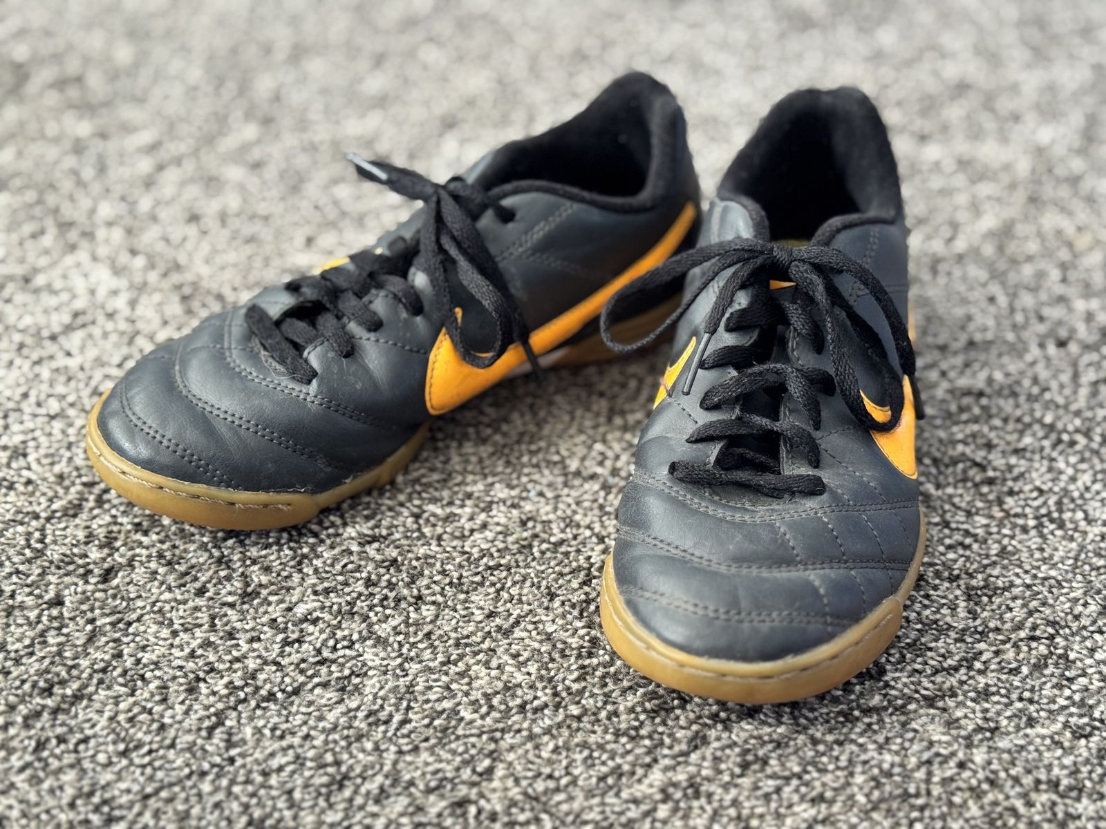 Nike Tiempo size 4Y indoor black shoes Still have lots of life left in them. Just marked up a little.