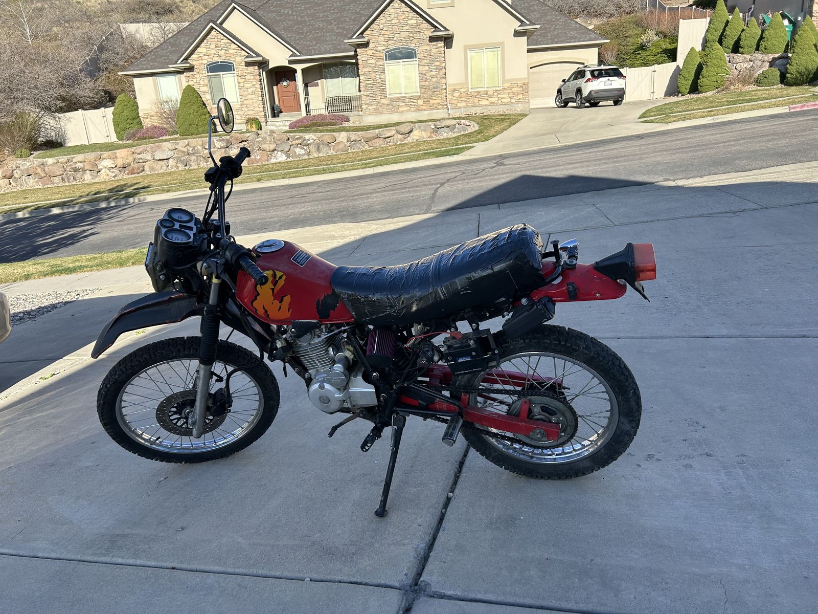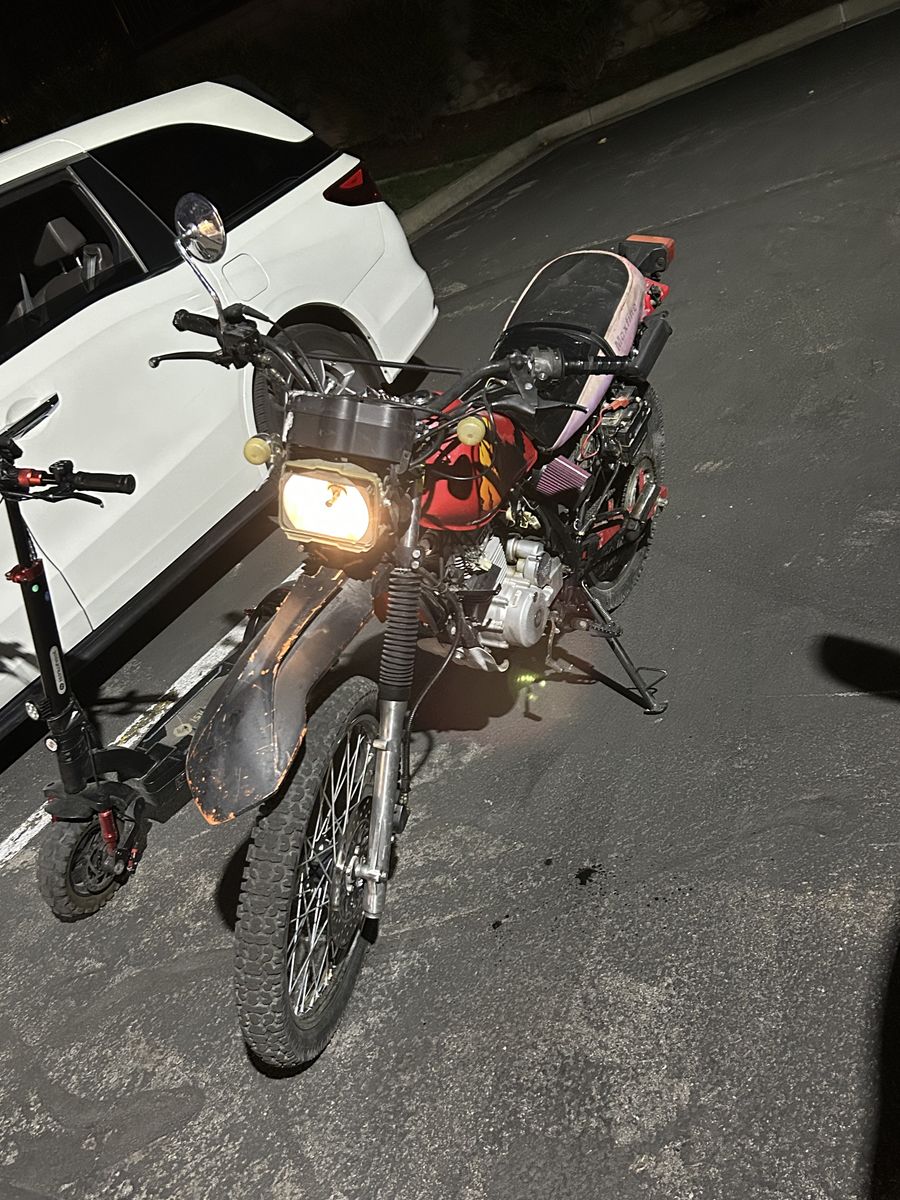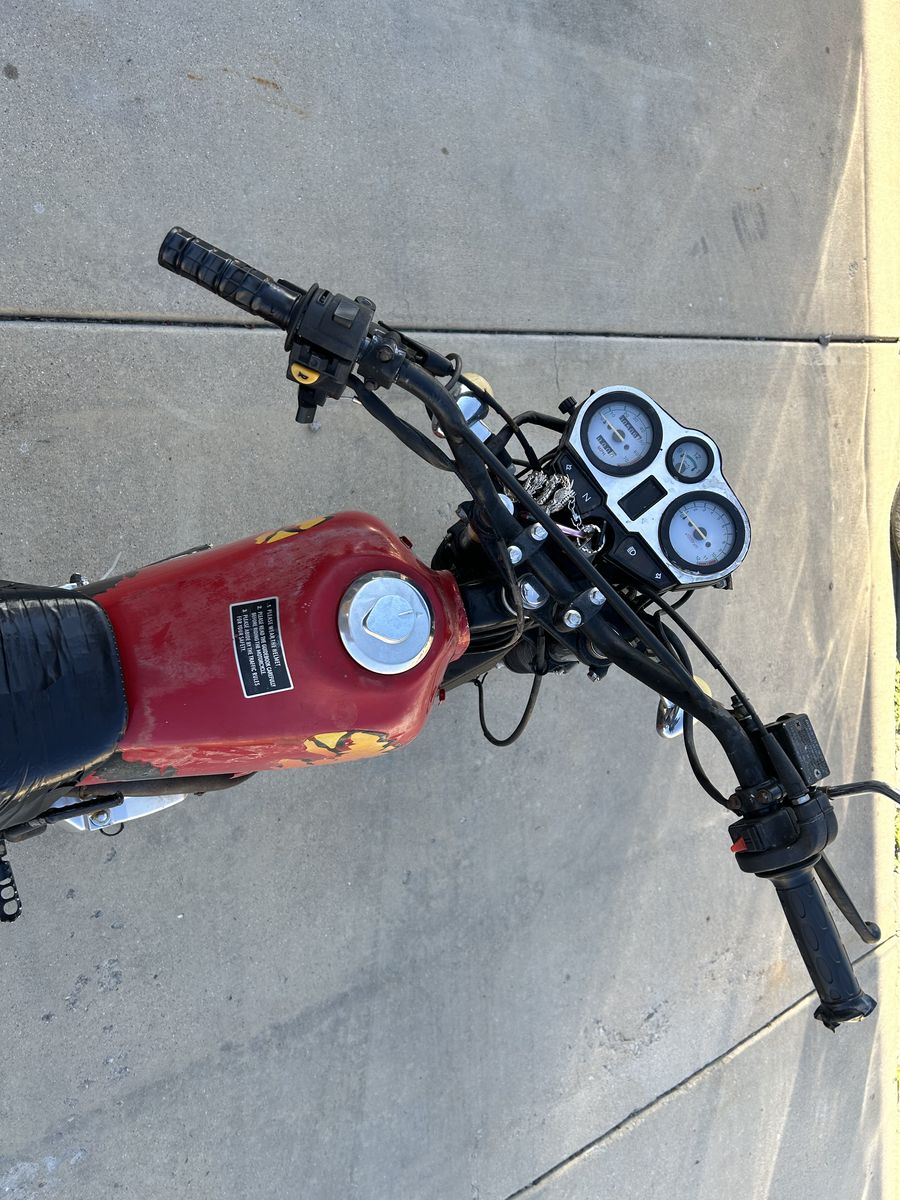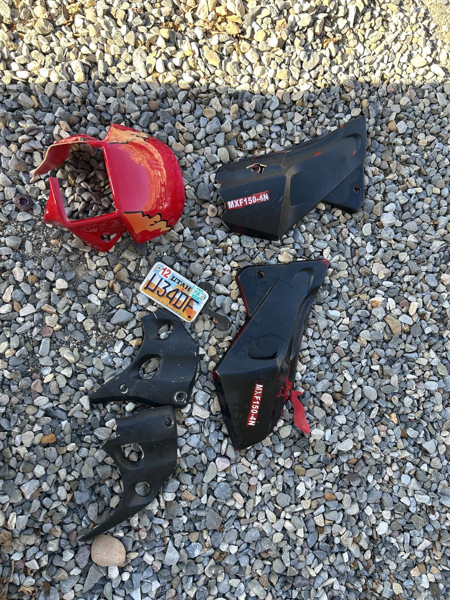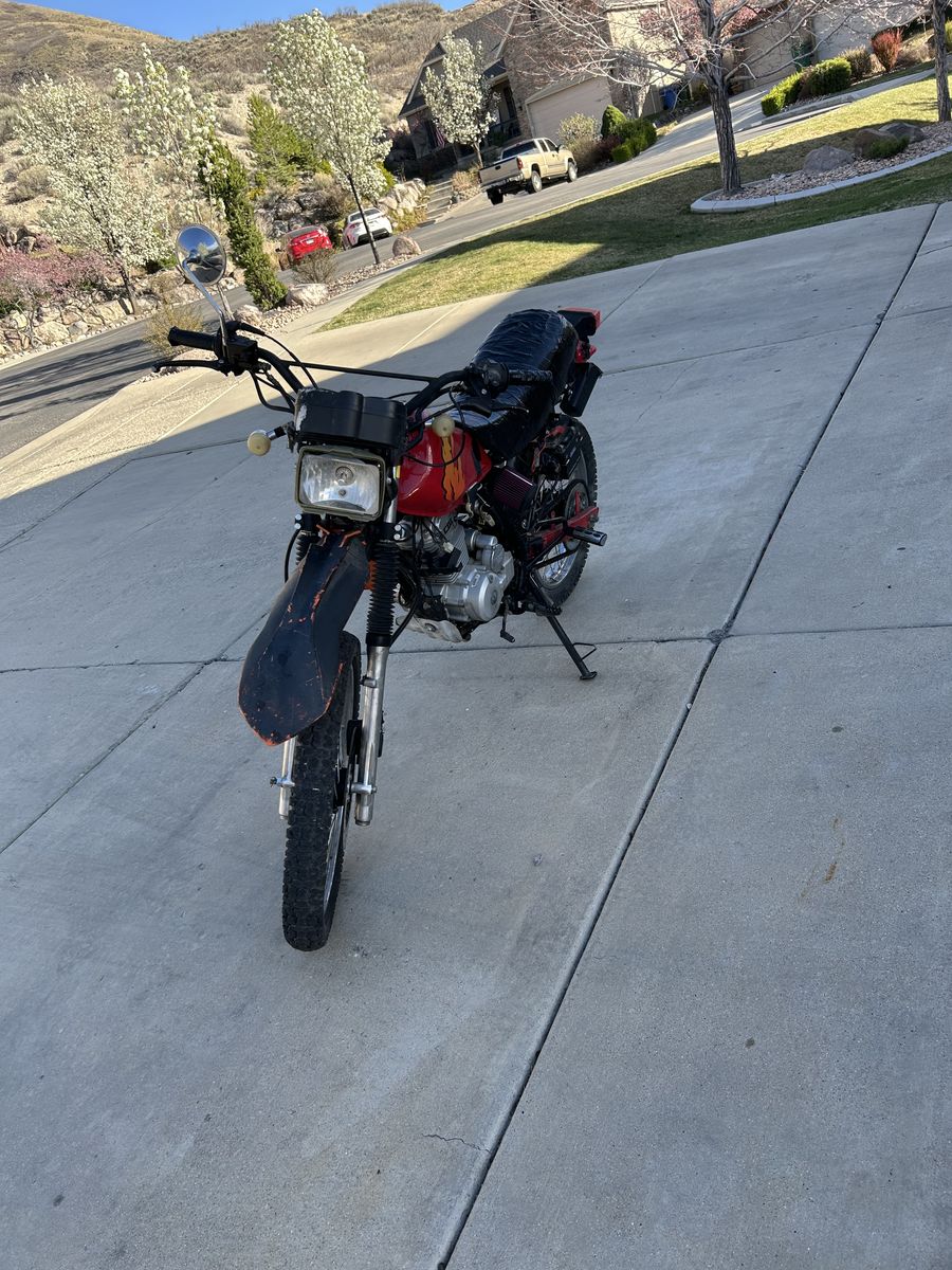 This is an awesome bike that has a surprising amount of power! I’m 215 pounds and it rides me around great!! Pros Runs and drives great! Super fun with a comfortable seat Not too many miles and has lots of life left Can be made street legal Title in hand Electric start (battery is dead) New front and back tubes New throttle Front brake just bled New air filter Carb just cleaned Comes with a SICK dragon keychain and key Just lubed up the chain 5 speed Cons Seat works great but duct taped Plastics and cosmetics aren’t perfect If you want to learn clutch or just an awesome bike without the high price tag this is the bike for you! Comes with some plastics that came off(pictured) Ready to ride! Come pick it up!! 595 OBO