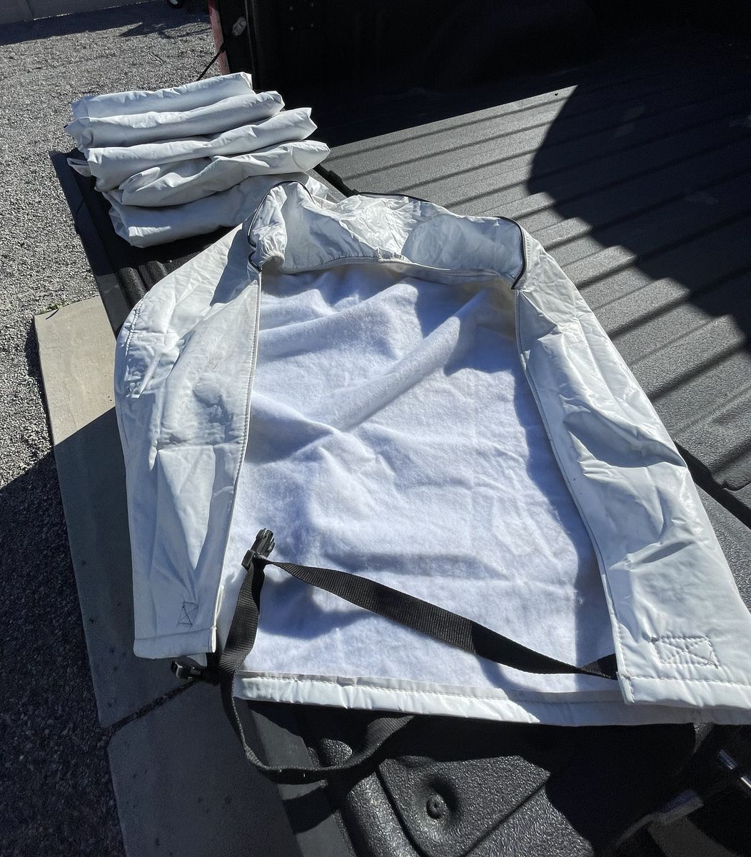 They are in excellant shape, no tears. Protect your wheels and tires while parked.
