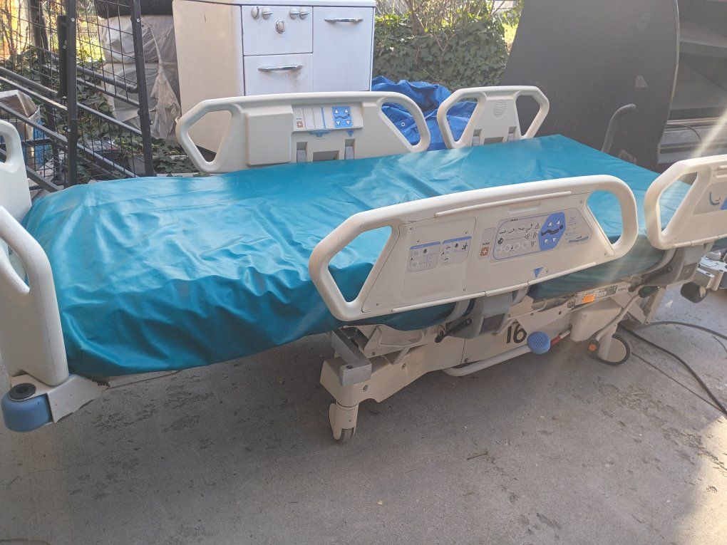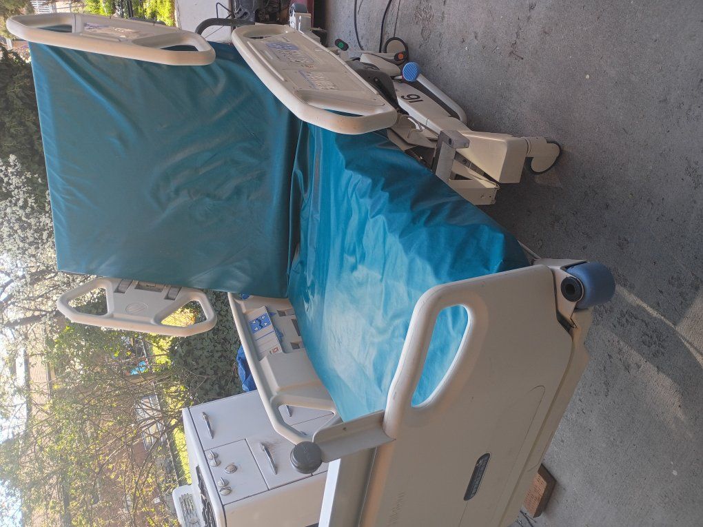 Hill rom electric hospital bed with mattress, just like the hospitals use. It goes up and down, top of the head adjustments up and down as well as legs. Good working condition.