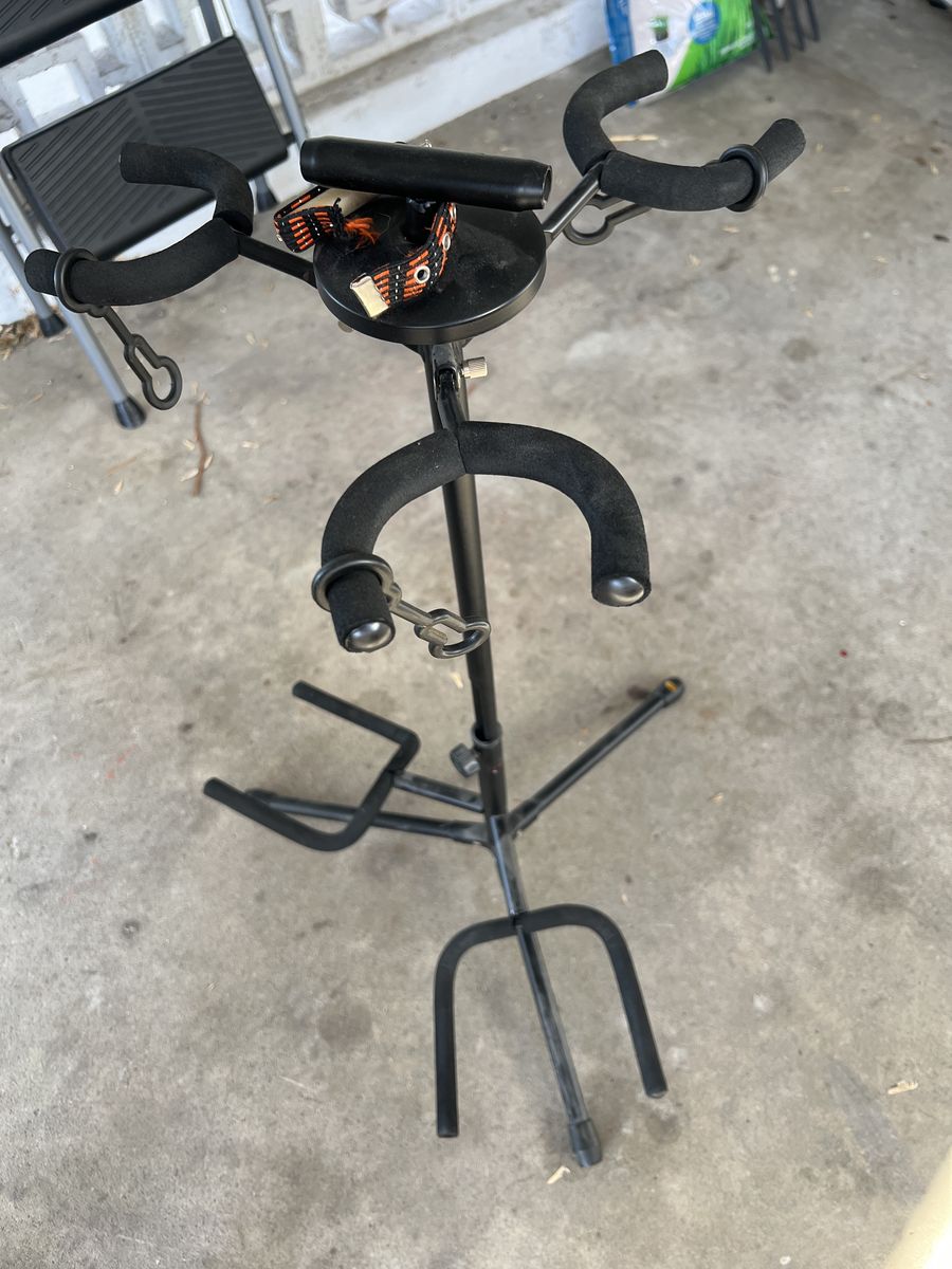 ApplePayUsed to support 3 guitars but one of the metal brackets on the bottom fell off. It’s visible in the pictures. Still supports 2 guitars though, and you can hang straps and cables and such off of the third guitar neck holder.
