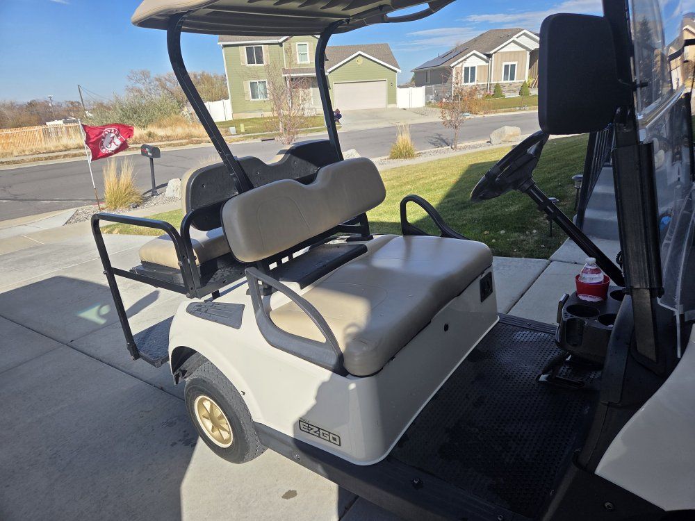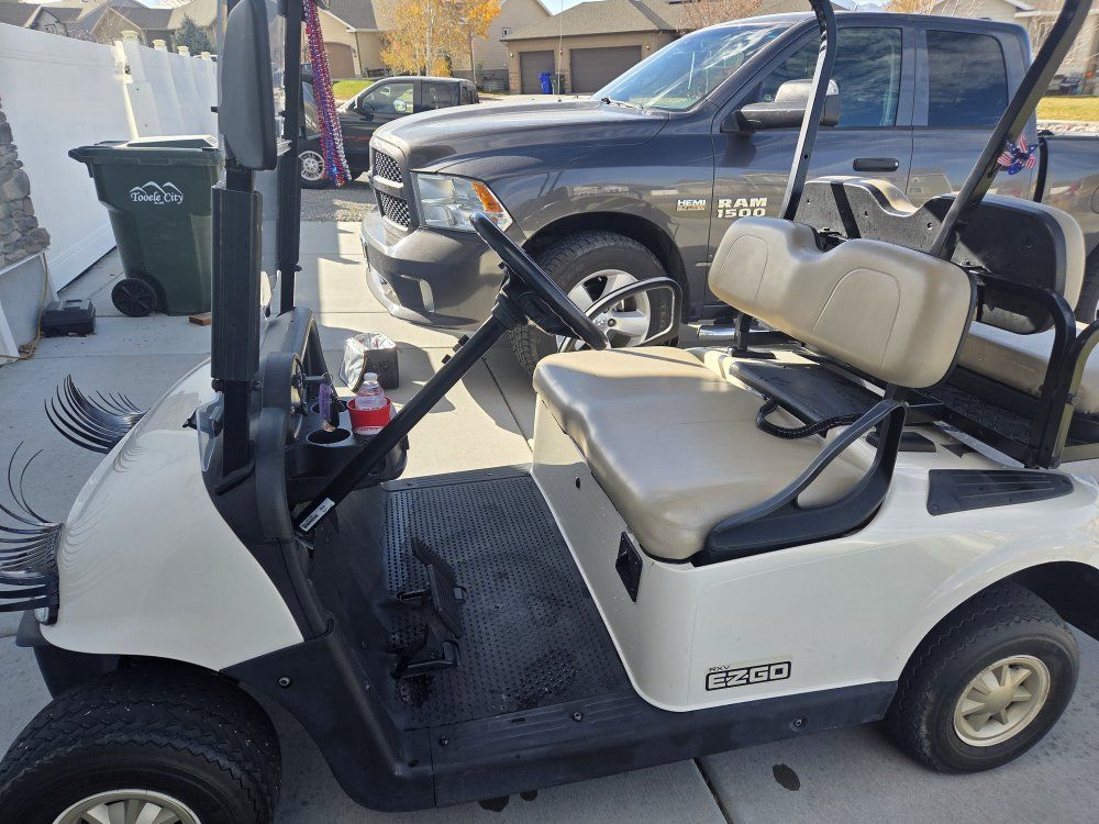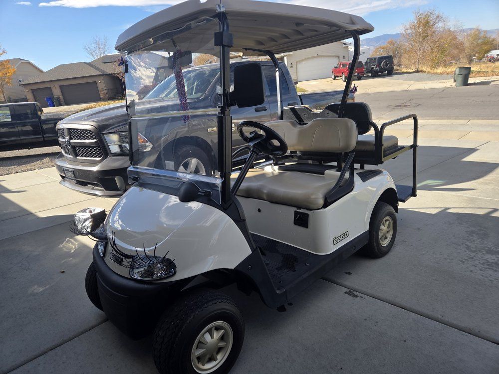 VenmoBeautiful golf cart. seats 4 windshield is split to go half if wanted. head lights. tail lights. comes with charger. 2016 EZGO.