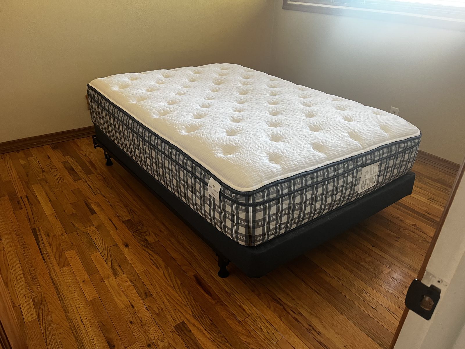 New serta perfect sleeper paid 700.00 house is selling and need moved quickly box spring bed frame and sheets comforter included if interested