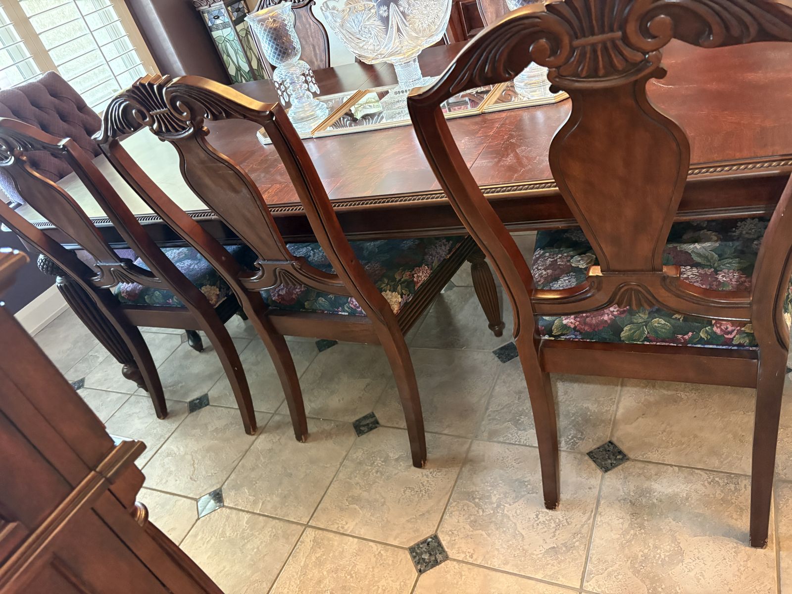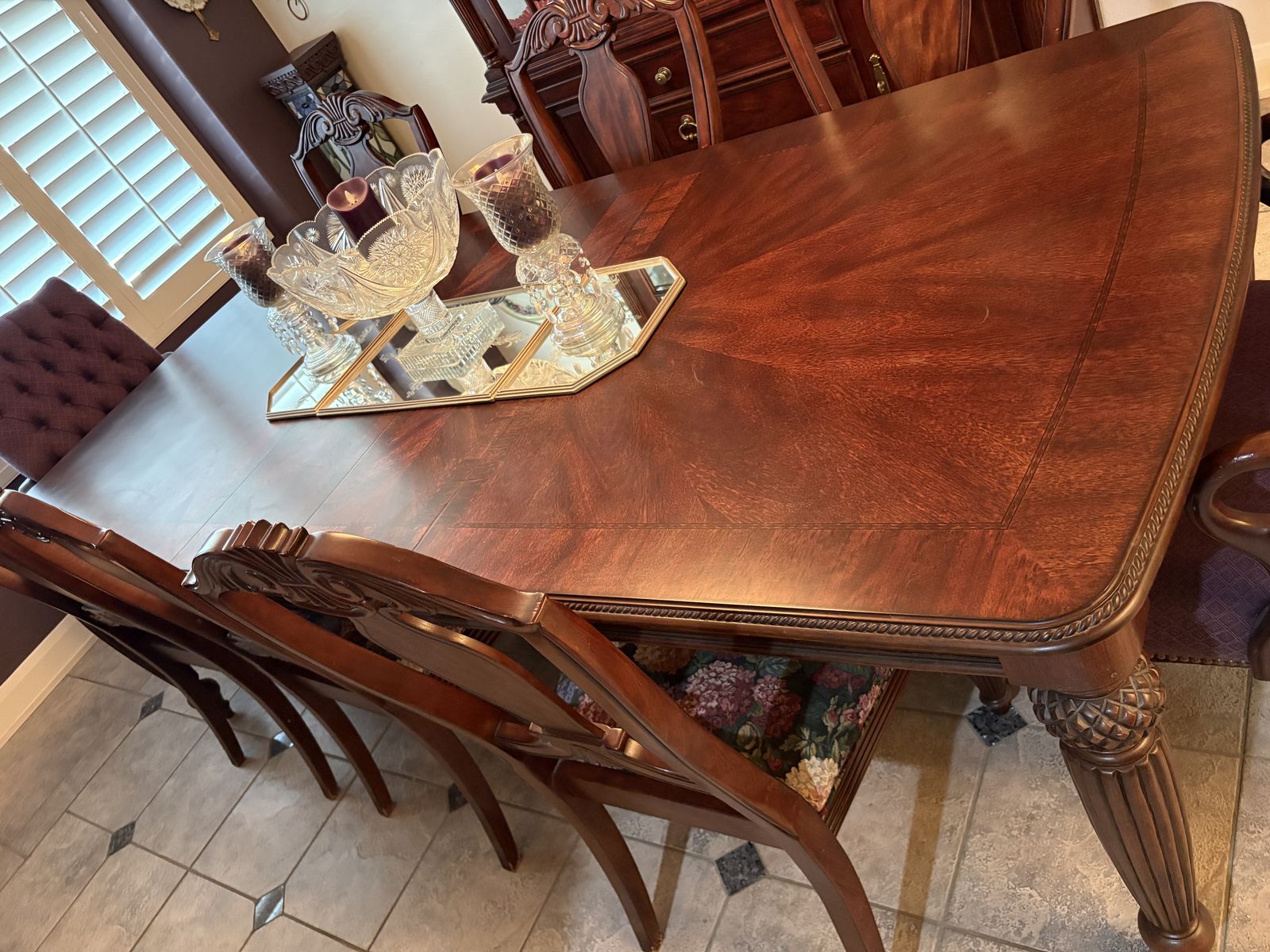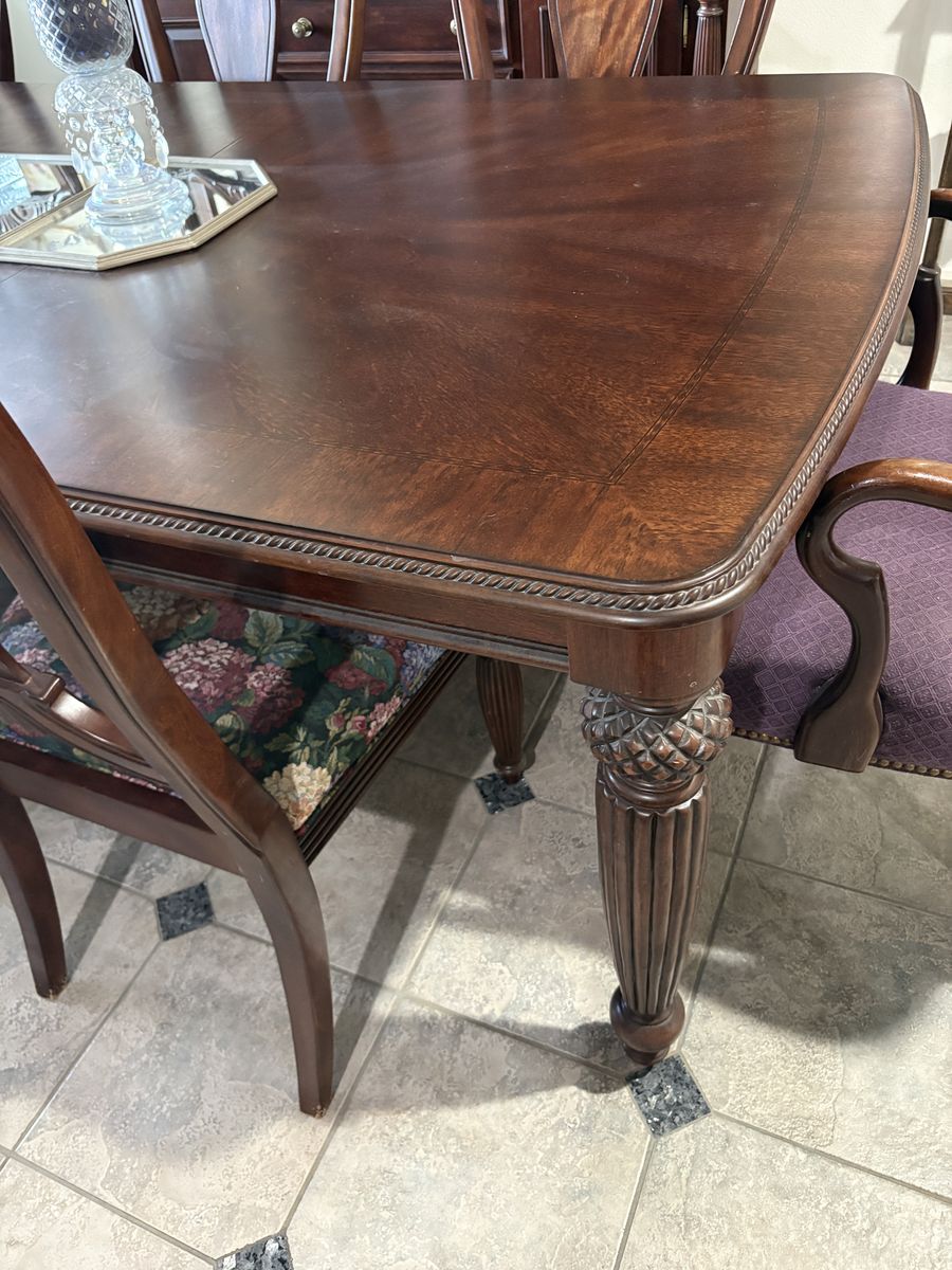 VenmoAbsolutely stunning Mahogany dining table, with 6 beautiful chairs comes with two removable leafs. Let me know if questions
