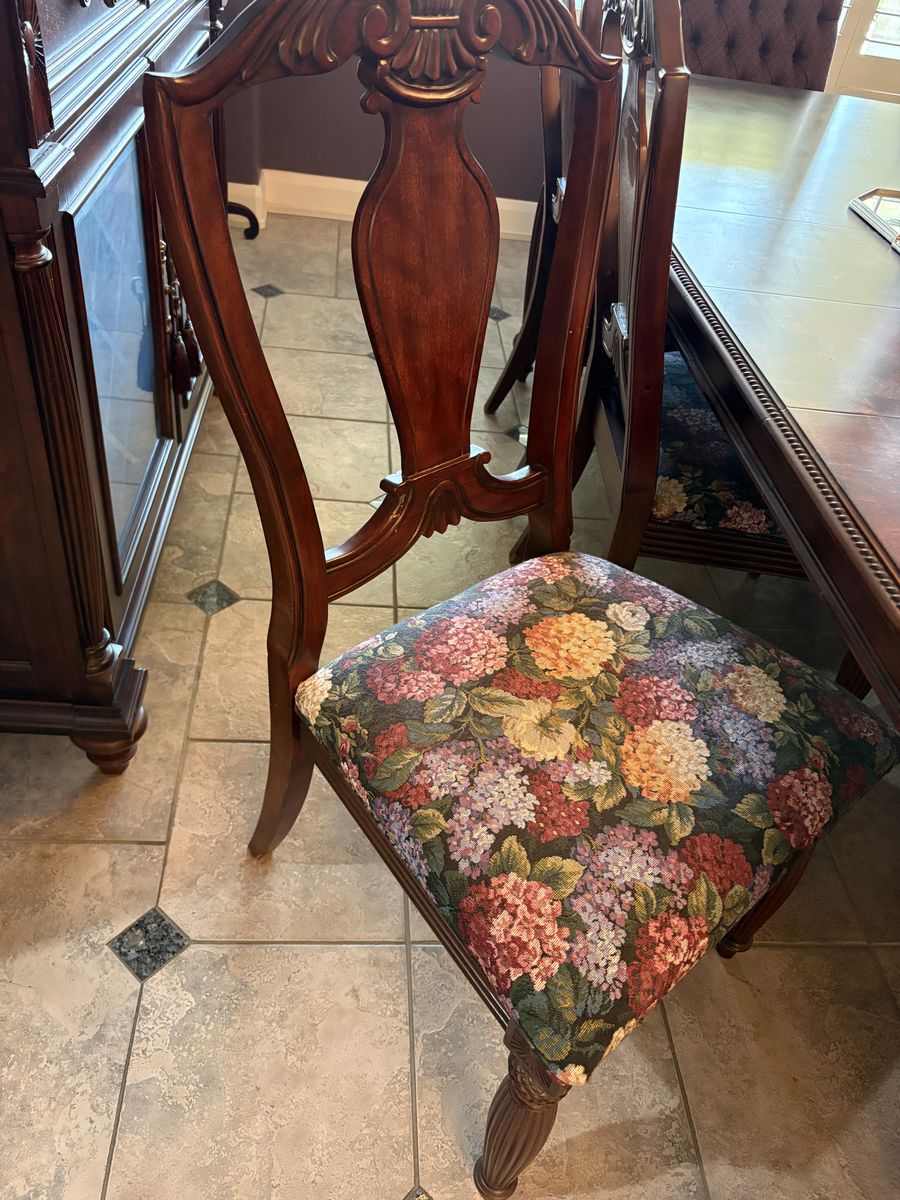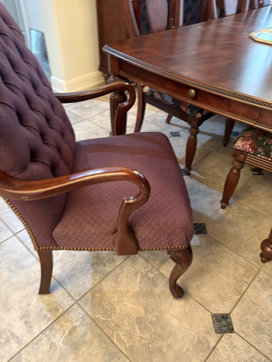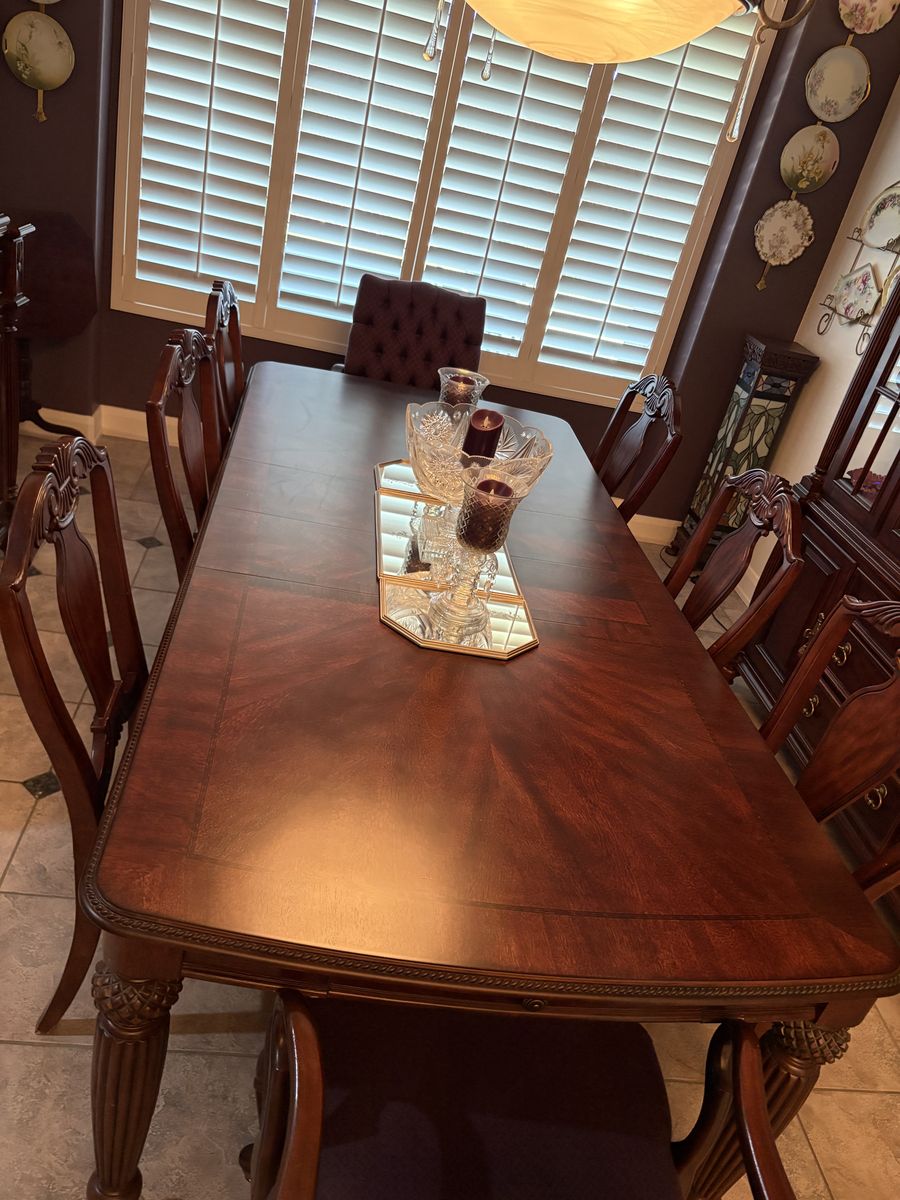 VenmoAbsolutely stunning Mahogany dining table, with 6 beautiful chairs comes with two removable leafs. Let me know if questions