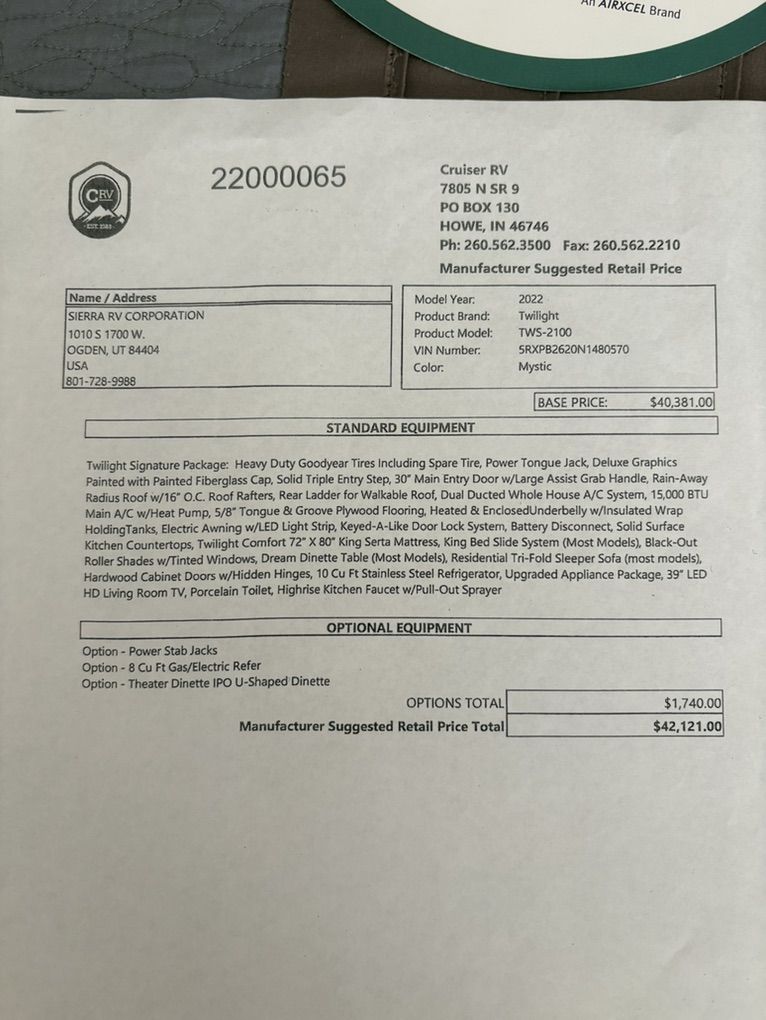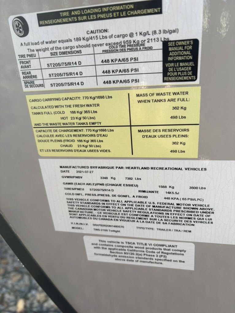 Please see pictures for details. Standard equipment listed in the white document in the pictures. Box length is approximately 22’ From the trailer ball to outside of spare tire is just under27’