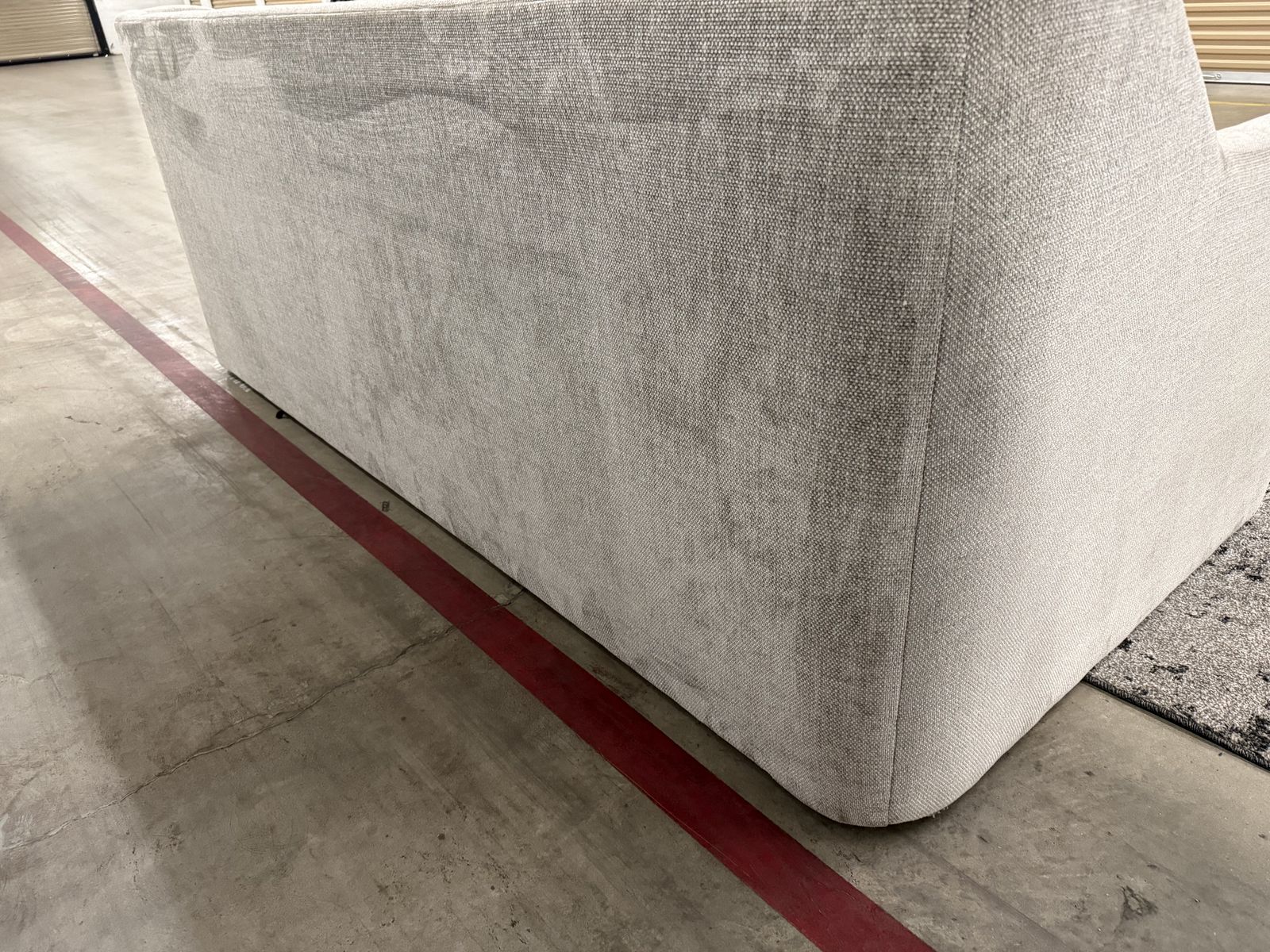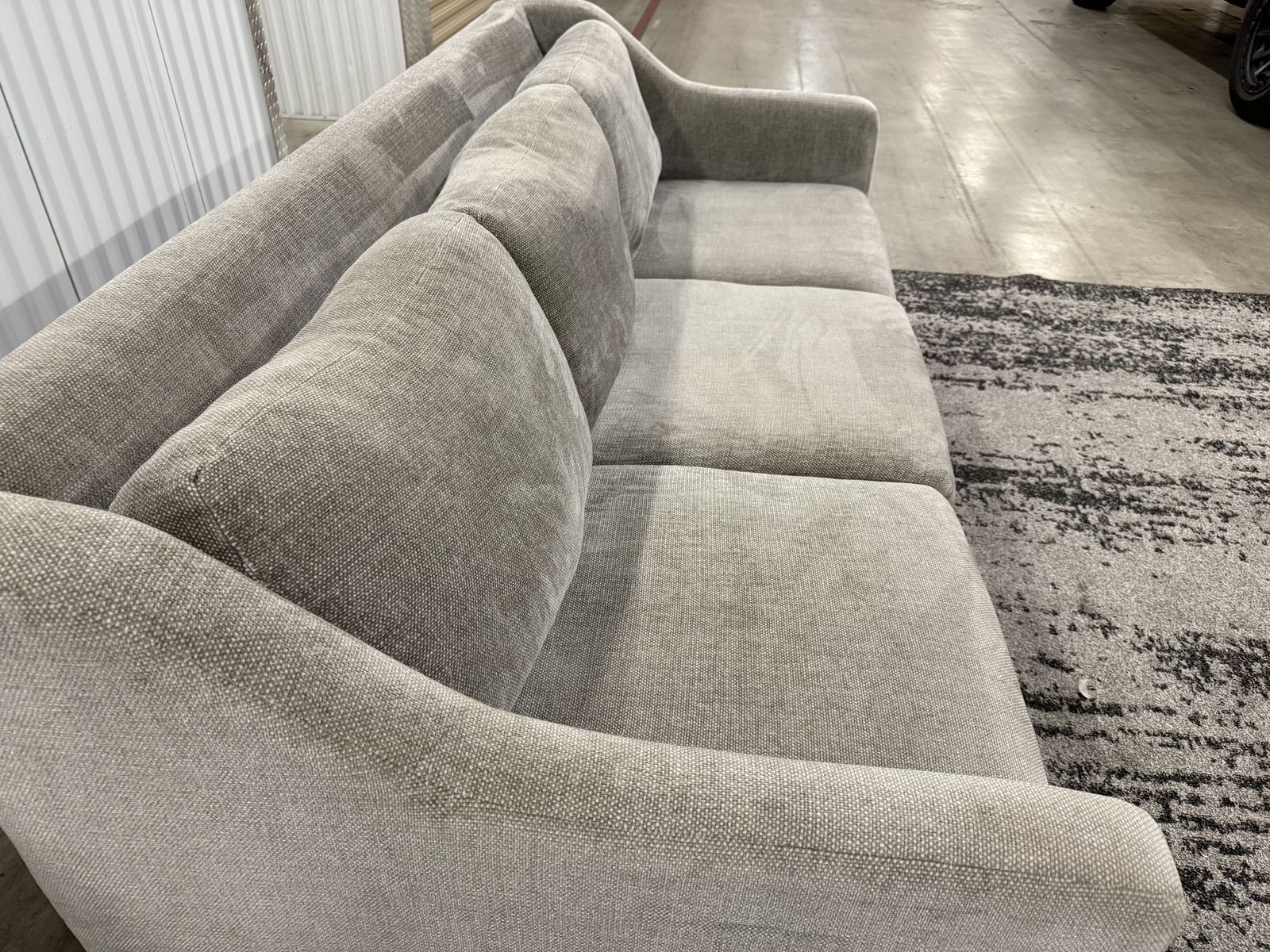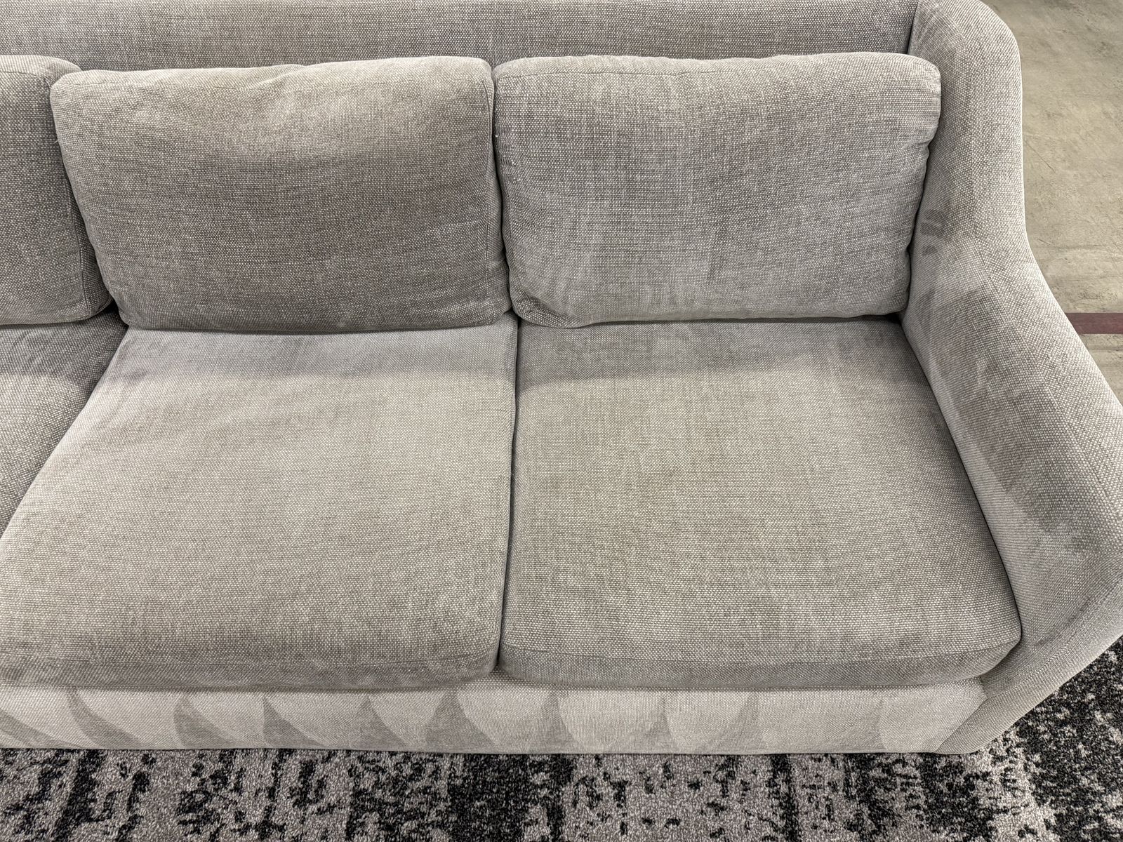• Fabric: Durable, high-quality upholstery in a versatile neutral grey/taupe that fits any decor. • Comfort: Deep, plush cushions perfect for lounging or movie nights. DOWN FILLED 🪶 Features: • Clean, modern lines with unique arm detailing. • Sturdy kiln-dried hardwood frame. • Large enough to seat 3-5comfortably.