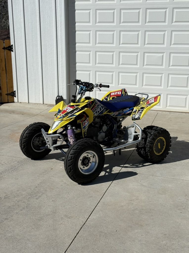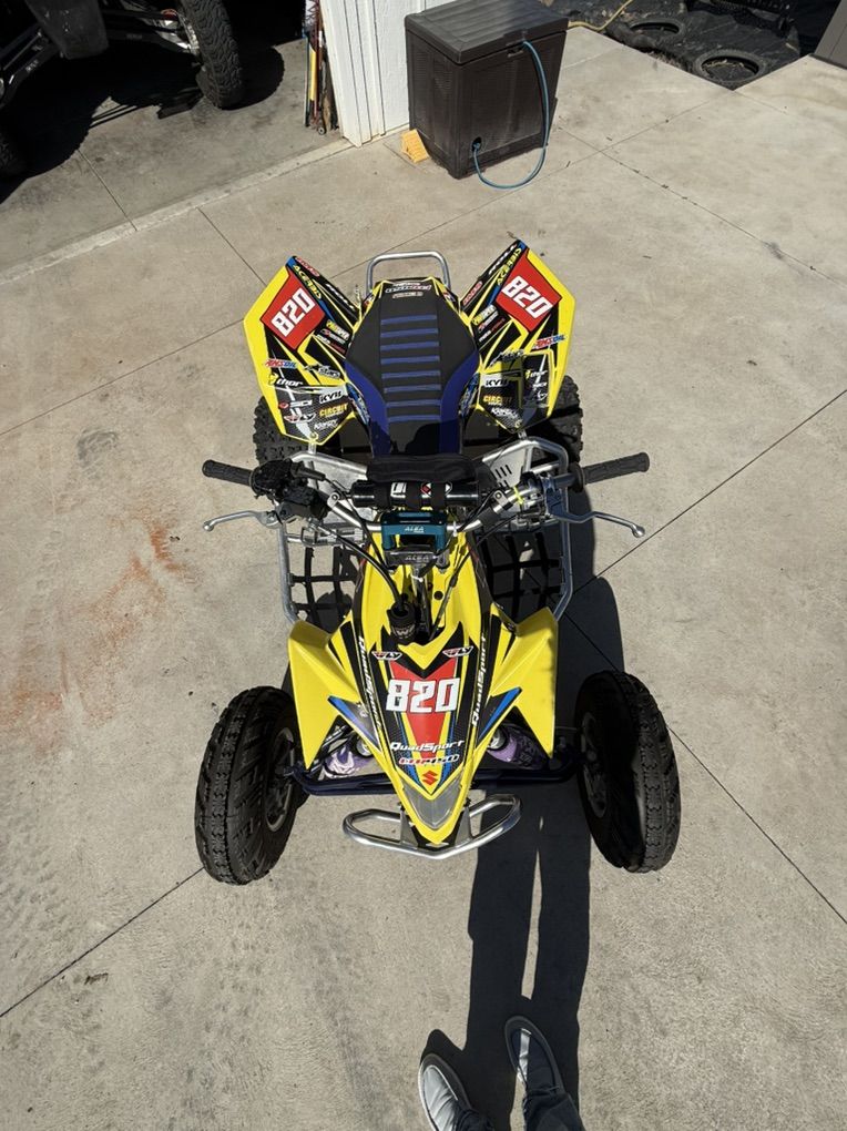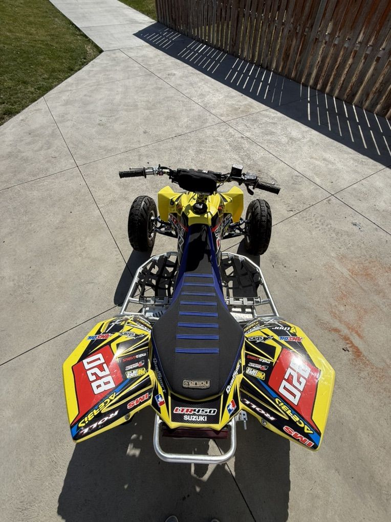 here is my 2006 ltr 450 quad racer these are one of the best race quads ever made and this one is very clean, very well taken care of and maintained, and has lots of goodies. this was my baby and still is. i recently upgraded to a rzr and now this is a garage ornament and ready for a new owner. this thing is stupid fast and comes with 3 sets of wheels and tires; dirt, street, and sand. i also believe i have upgraded break lines sitting around somewhere and a brand new skid plate. please serious buyers only don’t waste my time. my number is +14359944096