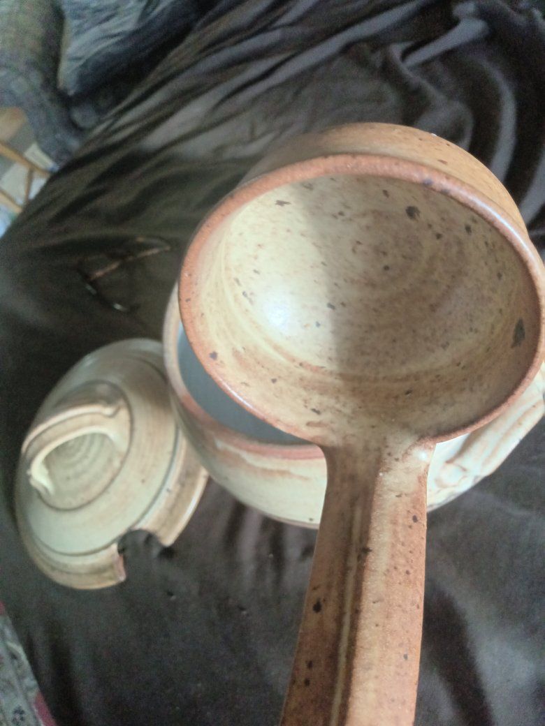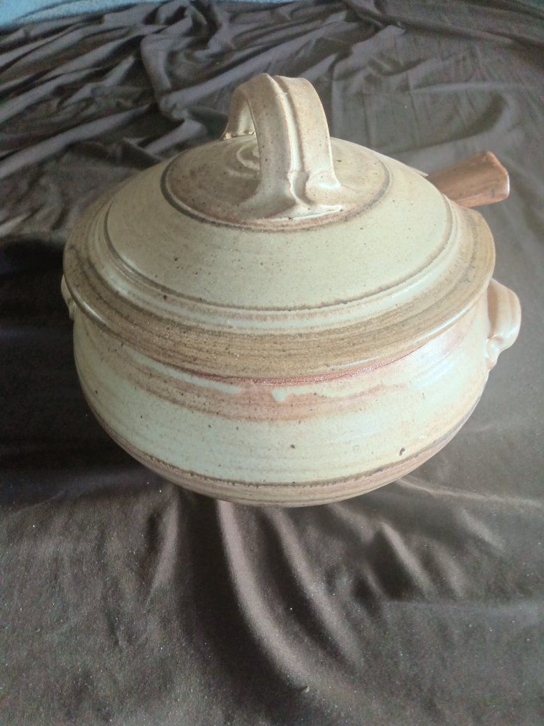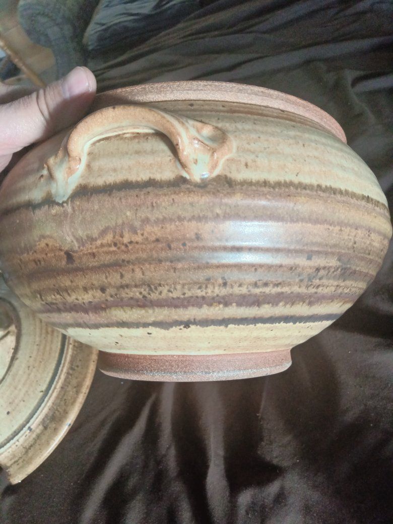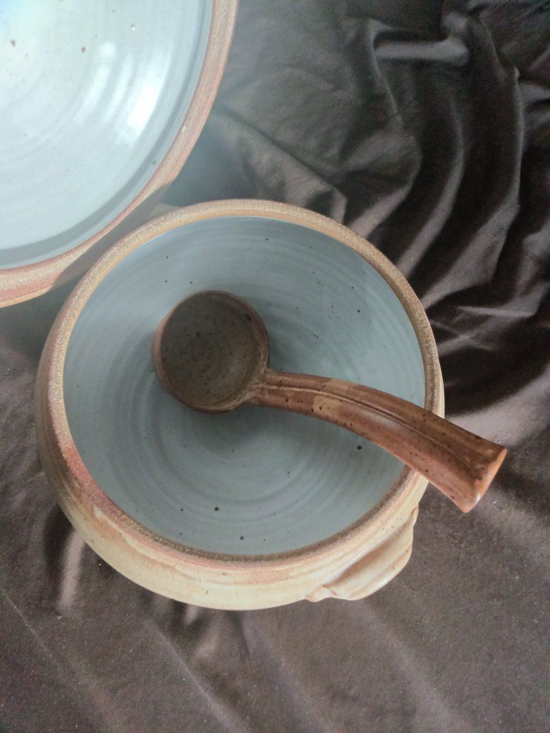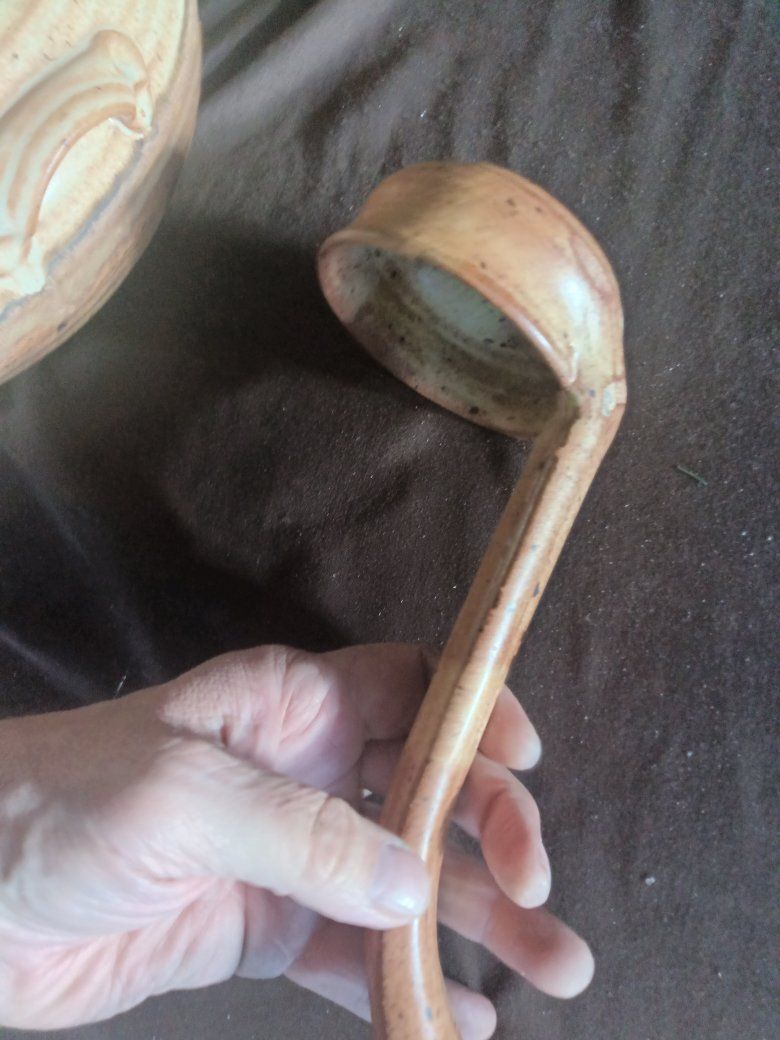 Beautiful Brown big food bowl ladle approximate size 12 in x 8 inches not including the lid in perfect condition no chips or any issues see pictures for details nice good quality brand!