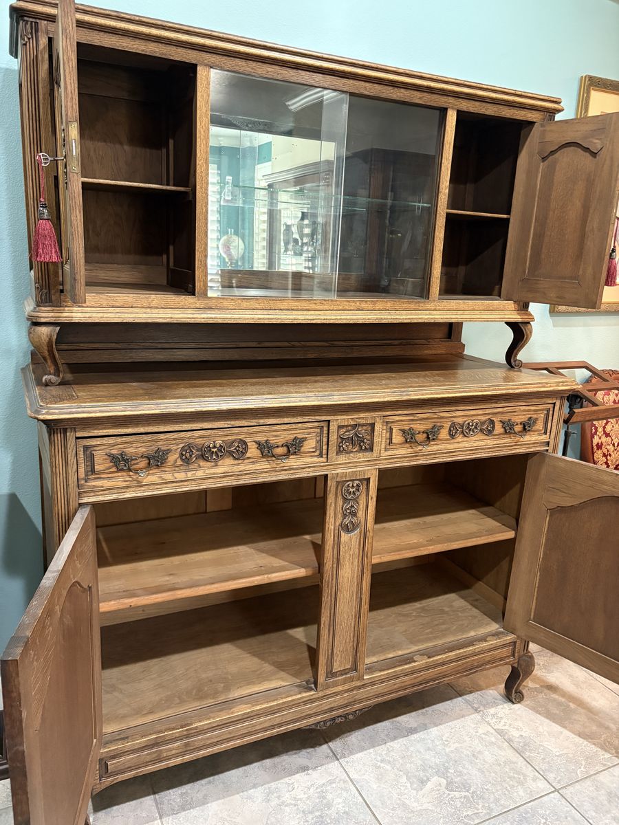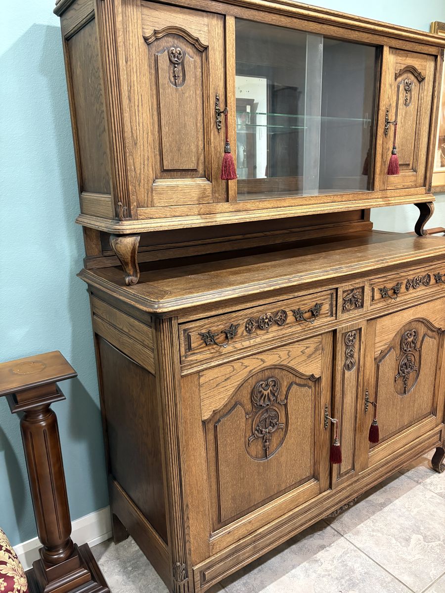 Absolutely beautiful antique hand carved hutch in great condition, considering its age.