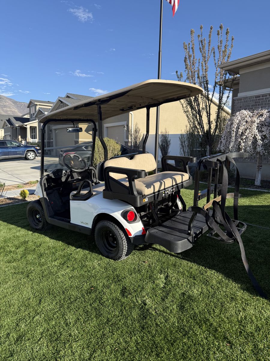 2023 EZGO Valor 4 seat golf cart with extended roof and bag rack. Tires and batteries are in great condition. We are only selling because we bought a different cart. Retail is $9000 asking $7500 OBO
