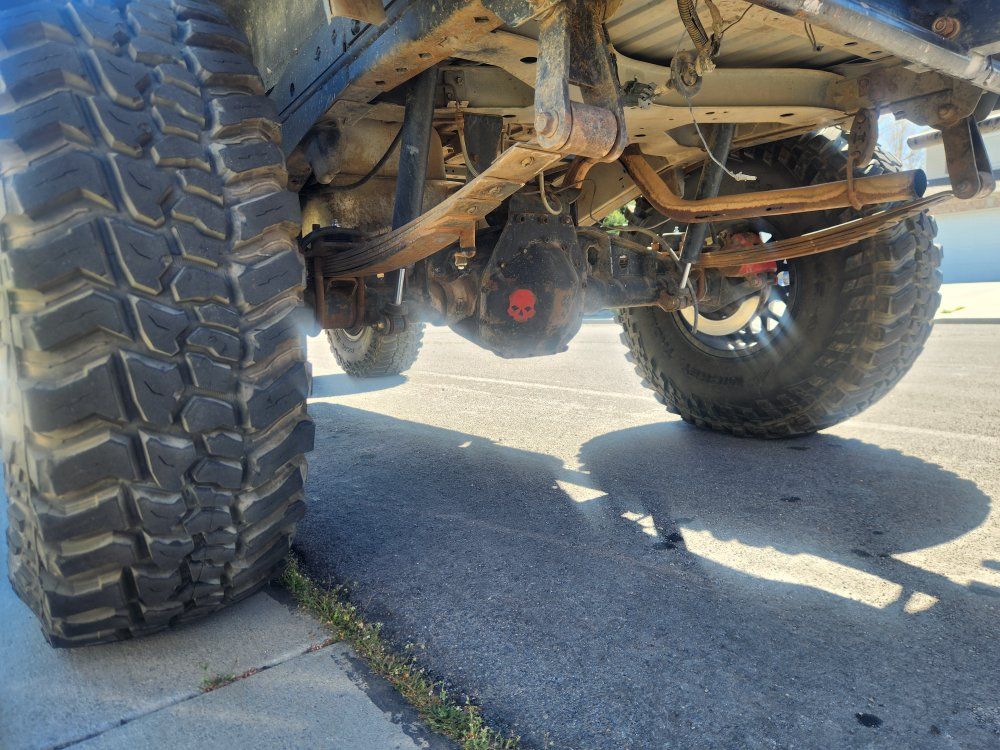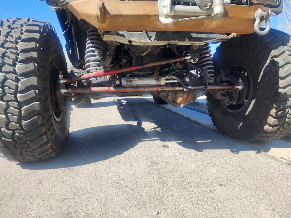 Doesn't come with wheels/tires. Dana 60 front, 5.13 gears,arb locker, truss. 14 bolt rear , 5.13 gears, Detroit locker, truss. Clayton offroad 3 link long arms. 4.0, aw4,231. trans needs finished hooking up. runs and drives as is. Frame Stiffners front to rear. Interior cage.