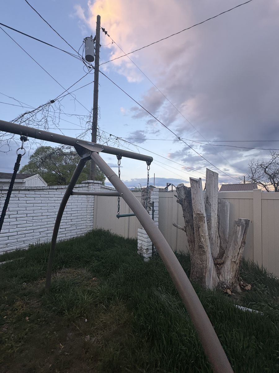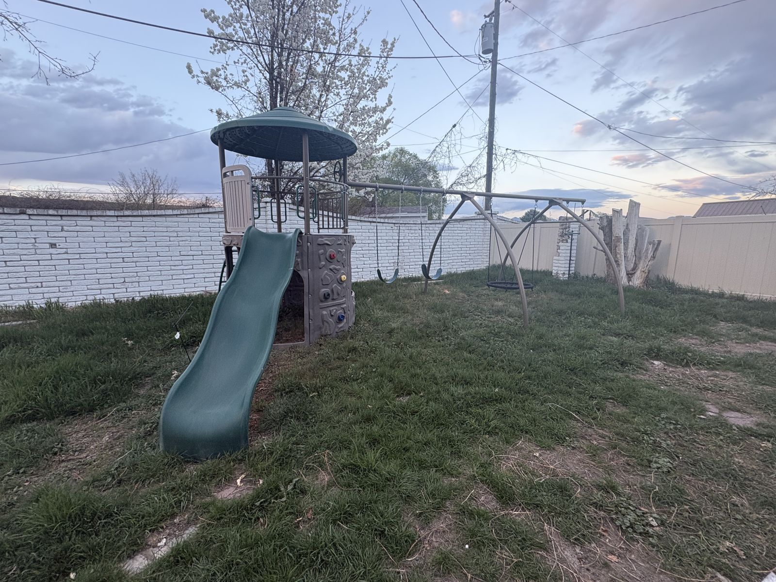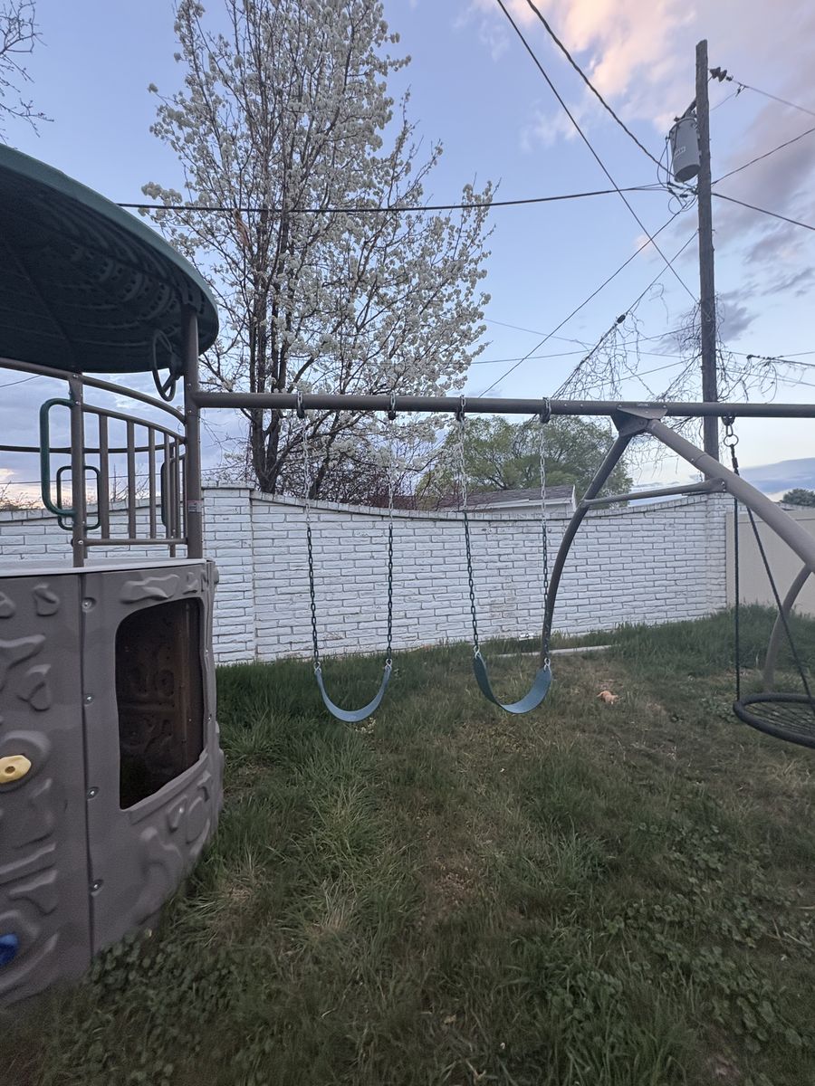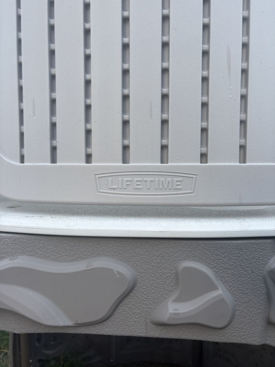 High-quality Lifetime brand backyard playset ready for a new home! Known for durability and long-lasting materials, this set includes a raised clubhouse with roof, slide, climbing wall, two belt swings, and a large saucer (nest) swing—perfect for kids of all ages.