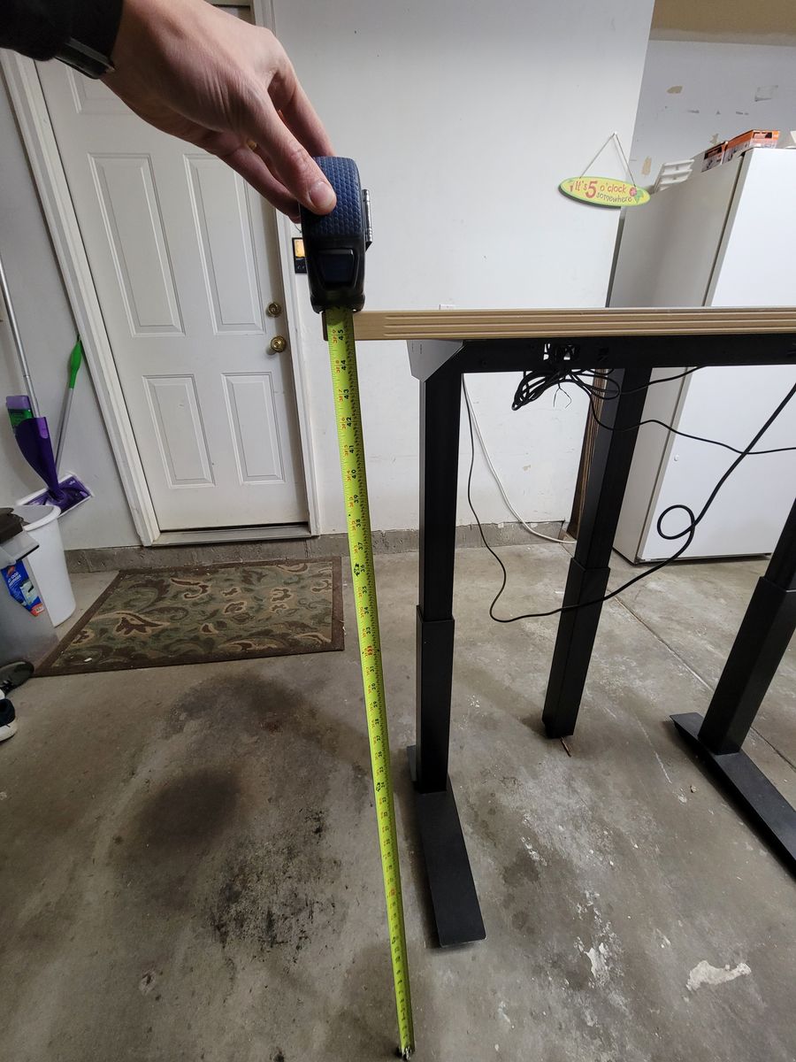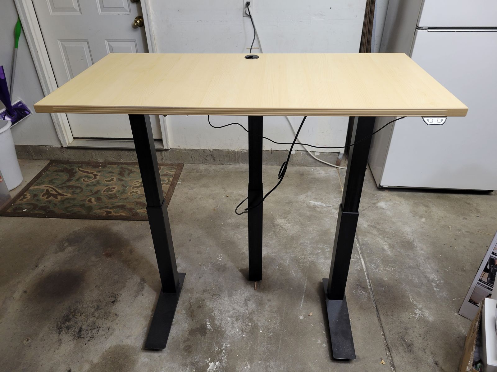 ZelleGreat electric standing desk. Like new and it raises from 23" to a height of 46". The desk dimensions are 23"x46". Very minimal wear.
