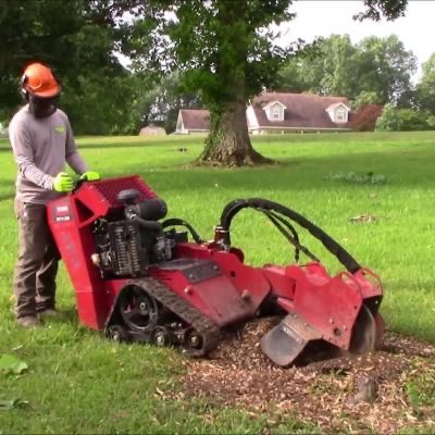 ZelleThis stump grinder will fit through tight spaces. It can handle any size stumps you have. Call or message me to reserve.
