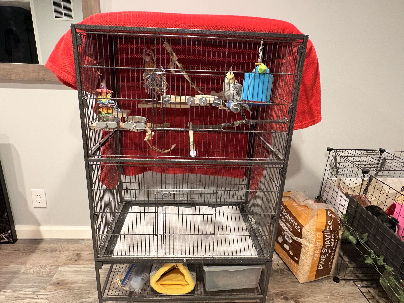 CashAppI bought this bird for my son about a year and a half ago and paid over $300 just for the cockatiel. It comes with this metal birdcage and all the toys and equipment. No trades please. $275 obo