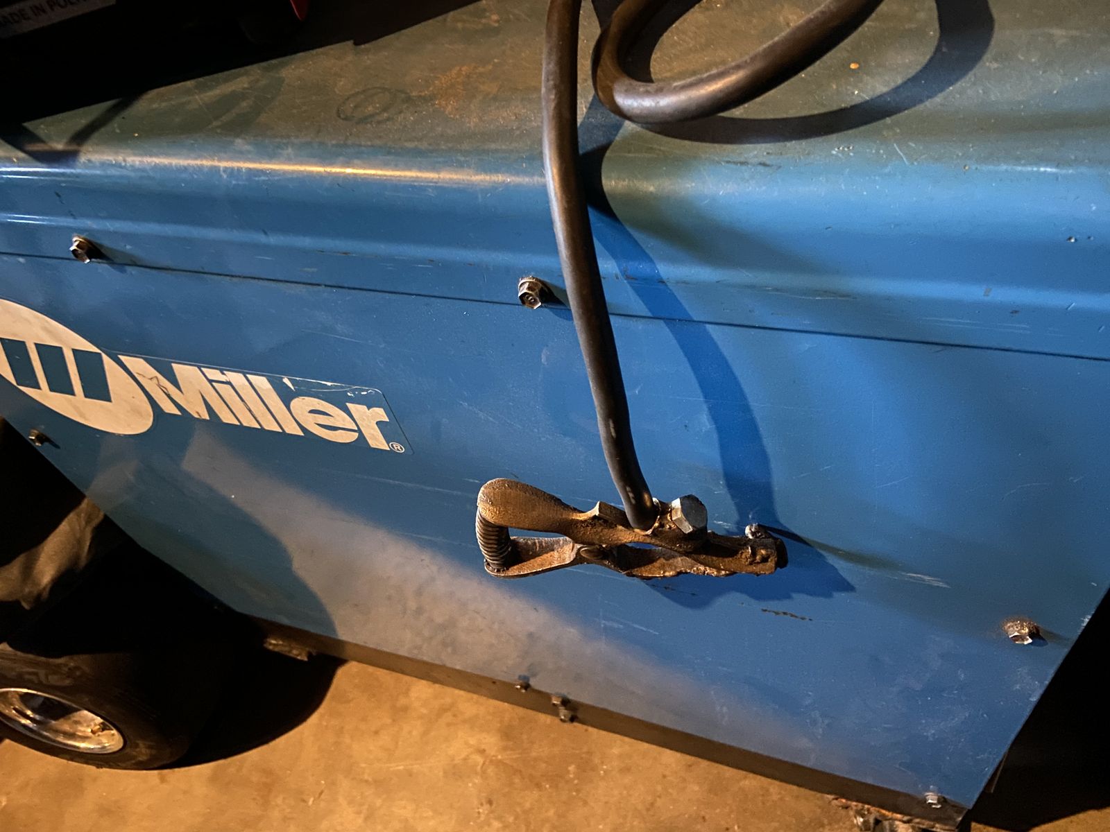 Runs great, stinger is a bit worn, no issues Includes stinger, clamp, and full box of 7018