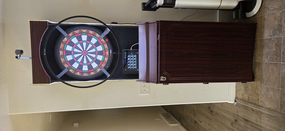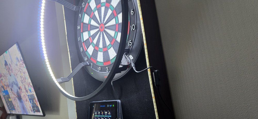 This is the ultimate Darts setup for darts enthusiasts, game rooms, etc.. I have put alot of time and money into this setup and it brings endless entertainment. I really hate having to sell this, but really need money at the moment. The Granboard can run on a tablet or phone. Granboard also has a huge online play community and you can play other players from everywhere in the world. There are also many games like 01, cricket, and other fun games. The Grancam is awesome for online play as it records the Dartboard. The Target Corona Vision lighting system is by far one of the best dart lights on the market and illuminates the whole board.
