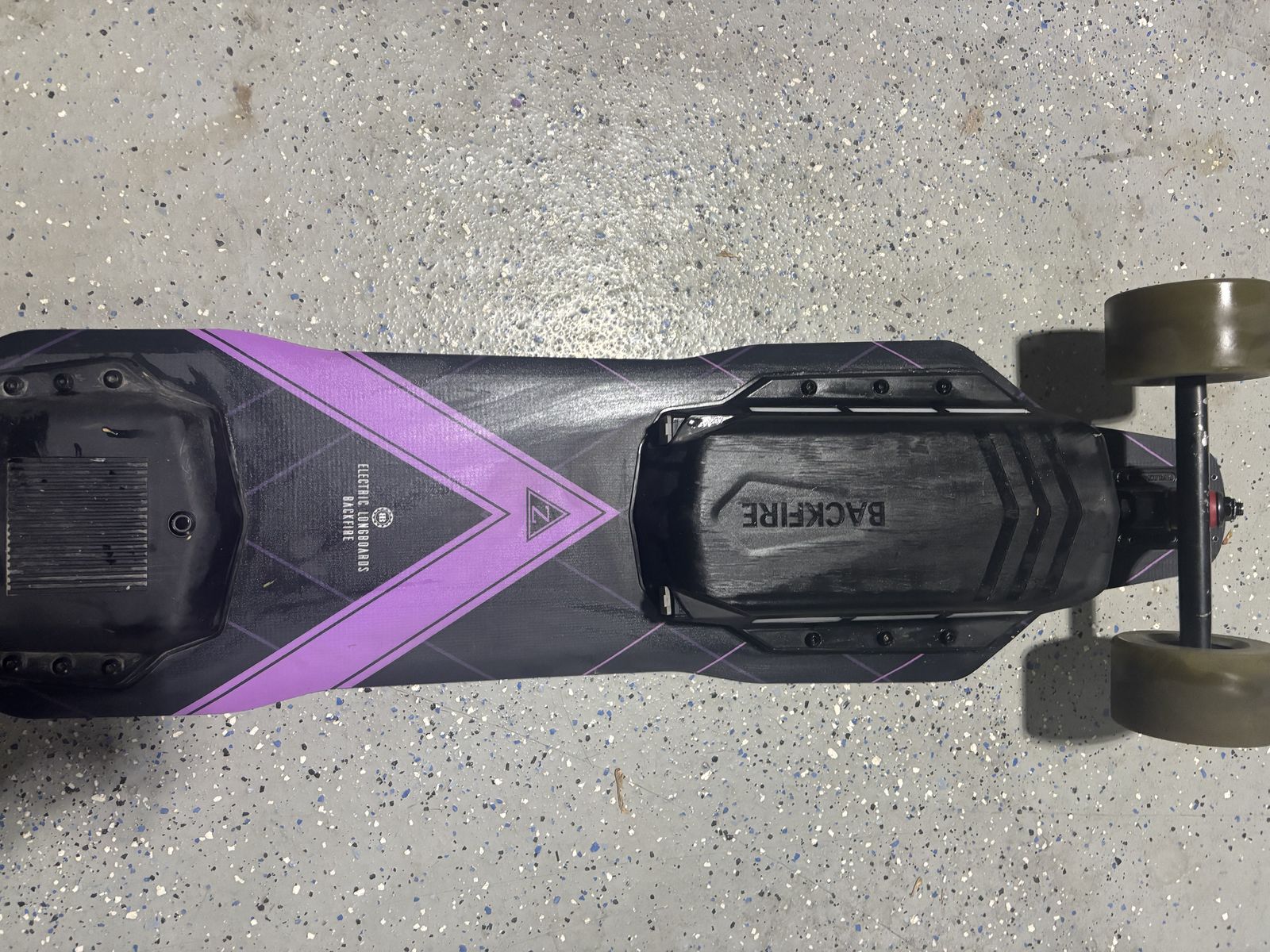 Full specs: Range: 25-30 miles/40-48km (180lbs rider 18.5mph flat road) Speed: 30mph Battery: 58.8V 8Ah, 403Wh 14S2P Samsung 40T 21700 Cells ESC: BACKFIRE 14S 60A FOC Remote: Motors: 875W2 Dual 5255 belt motors (1000W2 Peak) Deck: 39*9.8inch Composite Maple, Fiber Glass and ABS Wheels: 96mm 80A Standard Trucks: 8 Inch Gravity Casting Front Truck, CNC Forged Rear Truck Lights: Purple around deck System: 14S 58.8V Weight of Board: 23lb Max Load Weight: 120kg/265lbs Hill Climbing: 30% Water resistant: IP65 Charging time: 2.5 hours