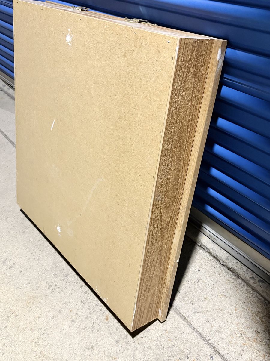 VenmoGood quality wood bath vanity medicine cabinet, 3 mirrored doors open to the inside. Can sit on top of drywall or sit flush inside a stud bay. Measures 30”w x 28.5”h x 4”d including mirror.