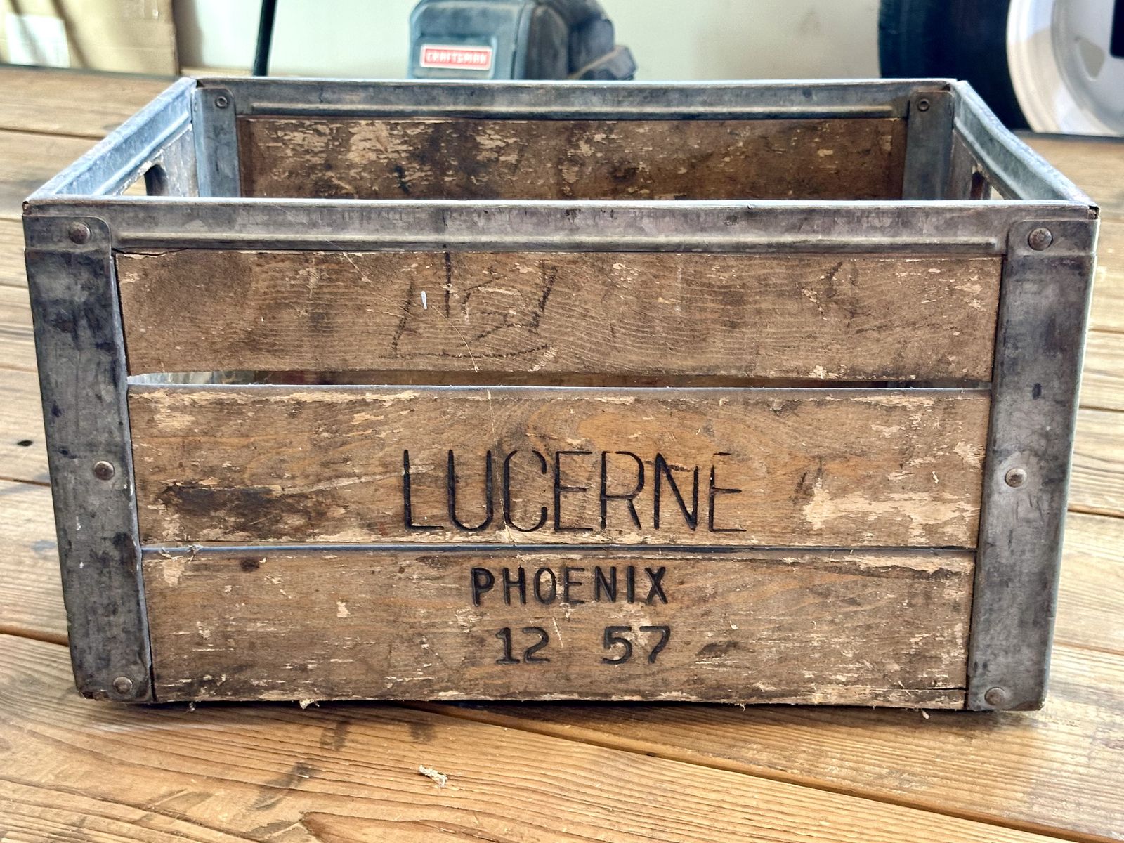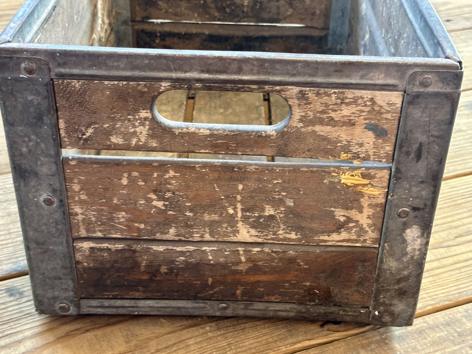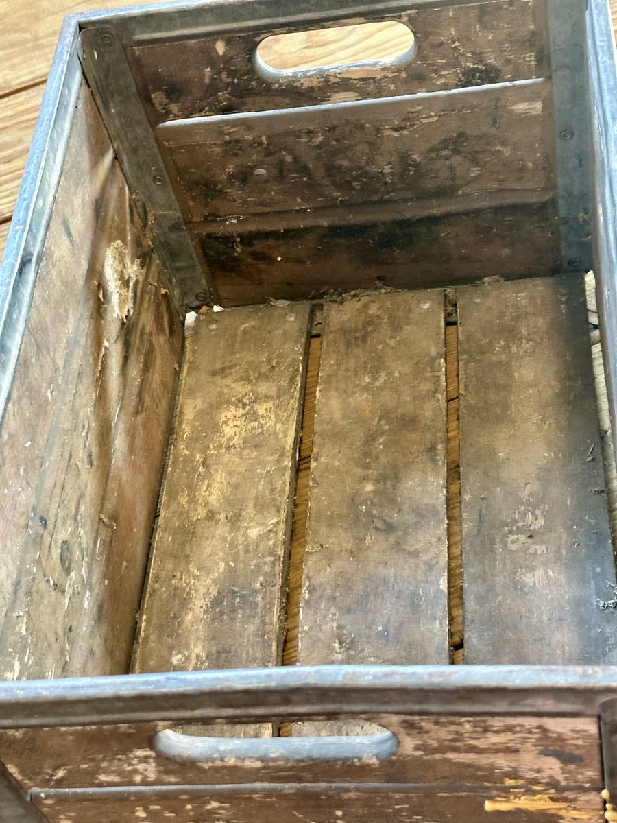 Awesome heavy duty antique crate with handles. Makes awesome decor for porch or inside