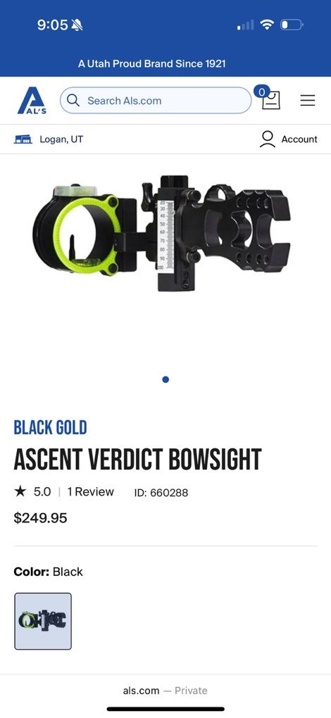 Black gold Ascent Verdict One pin slider have had it for a couple years probably only been In the field two dozen times. I went to a multiple pin my reason for selling. like new. $175.00 OBO
