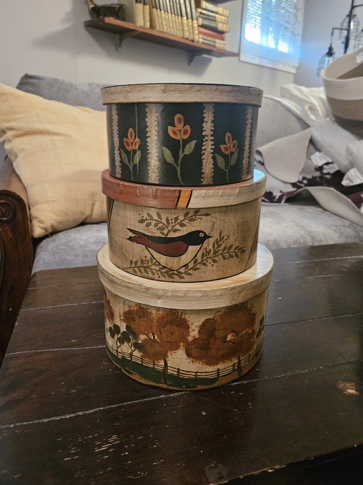 VenmoThis is for a set of 3 nesting or stacking round boxes for decoration or storage. No damage, from a smoke and pet free home. I'm moving from a house to an apartment. Please see my other listings. Thank you!