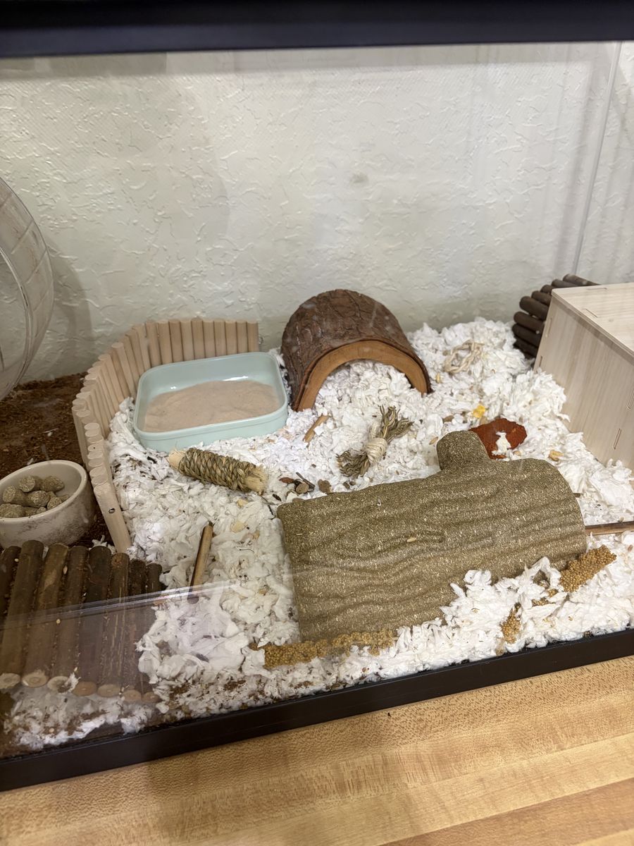 Complete hamster setup with everything you need from bedding, food, toys, treats, substrates, and more! Hamster (Rocco) is only a few months old and the sweetest guy, moving soon and won’t have any room for the setup. Is pretty heavy, but if you can get it out, it’s yours!